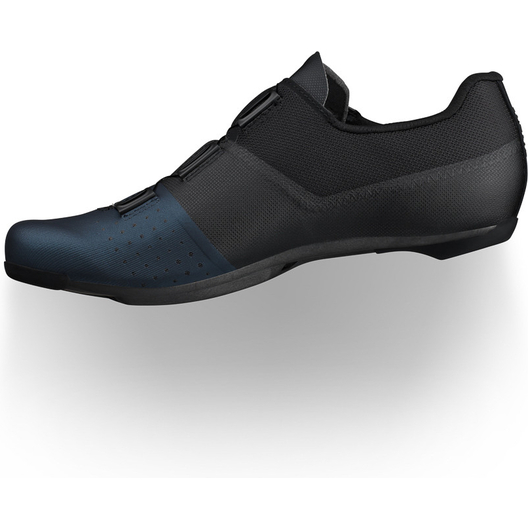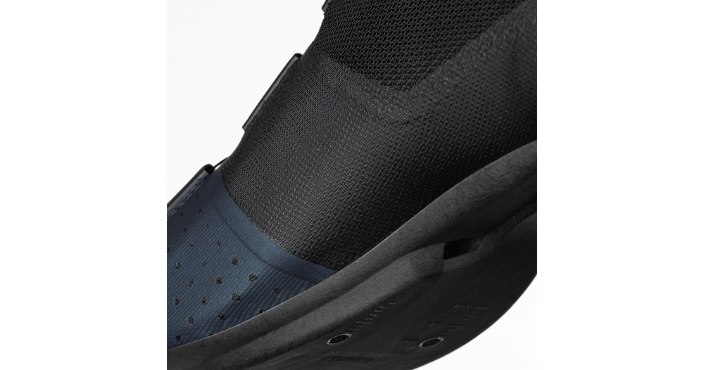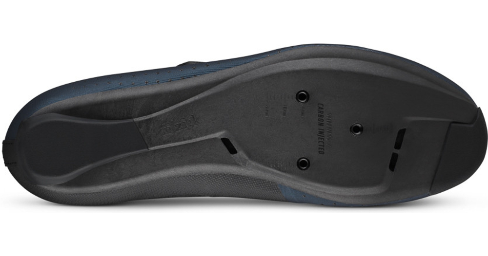 La semelle extérieure R4, modérément rigide, trouve un équilibre entre le confort et l'efficacité du pédalage, ce qui en fait une véritable chaussure polyvalente. Elle présente un profil plus bas, structurellement optimisé avec une composition de 15% de fibres de carbone infusées. La semelle R4 offre en outre une ventilation efficace avec des canaux internes pour une régulation efficace de la température. Le crampon est positionné légèrement plus loin vers le talon par rapport au placement traditionnel afin d'optimiser l'efficacité du pédalage et de réduire la compression du genou, ce qui est particulièrement adapté aux positions de conduite aérodynamique agressivement avancées.