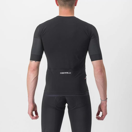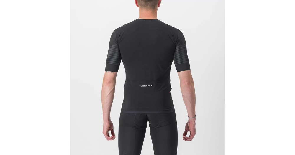 - Panneau en filet extensible tissé et côtelé sur les épaules pour assurer fraîcheur, confort et un aérodynamisme de pointe