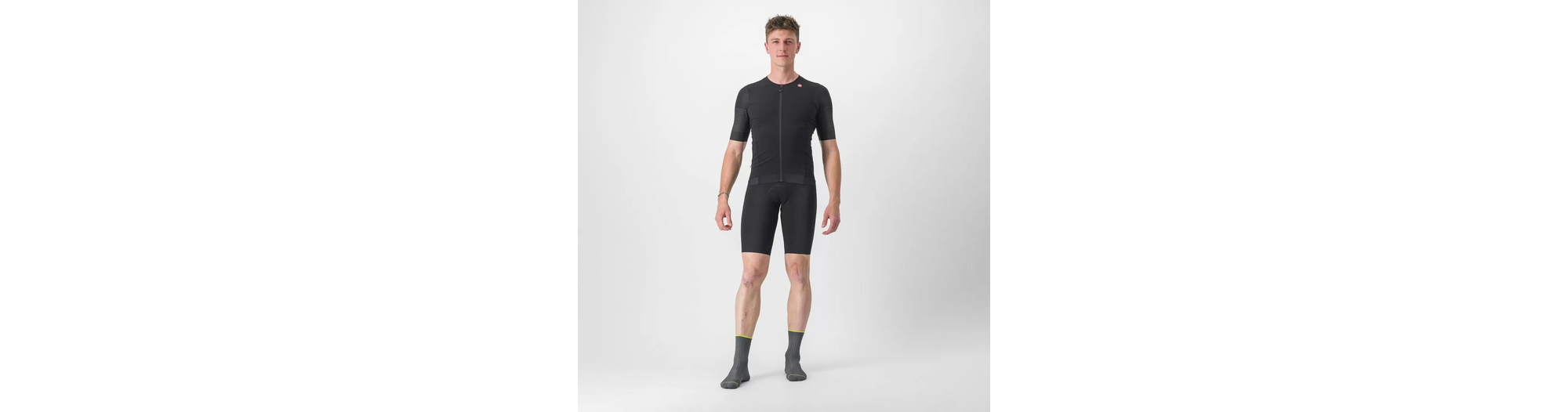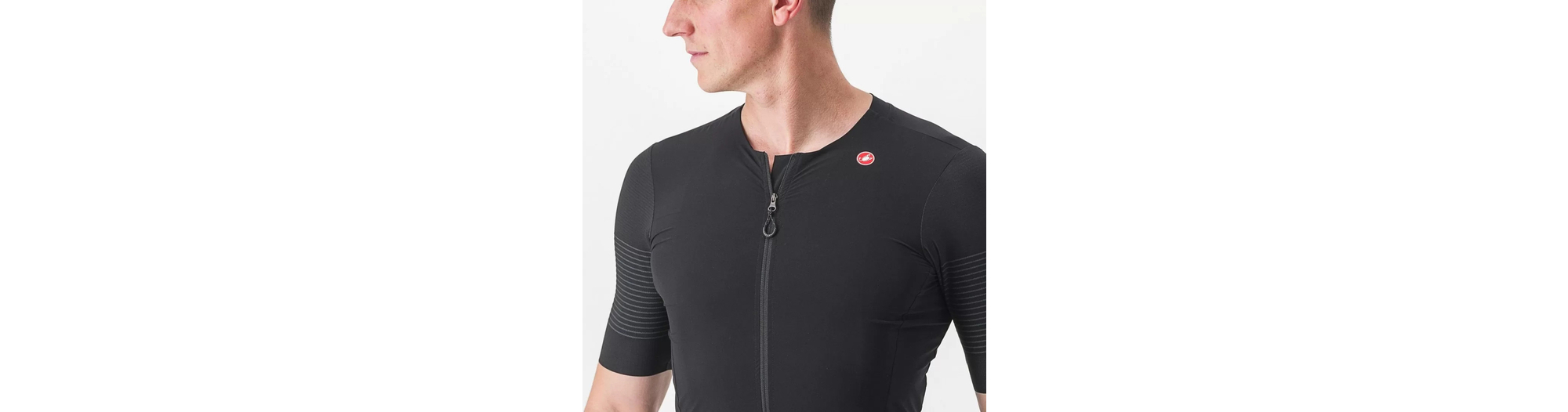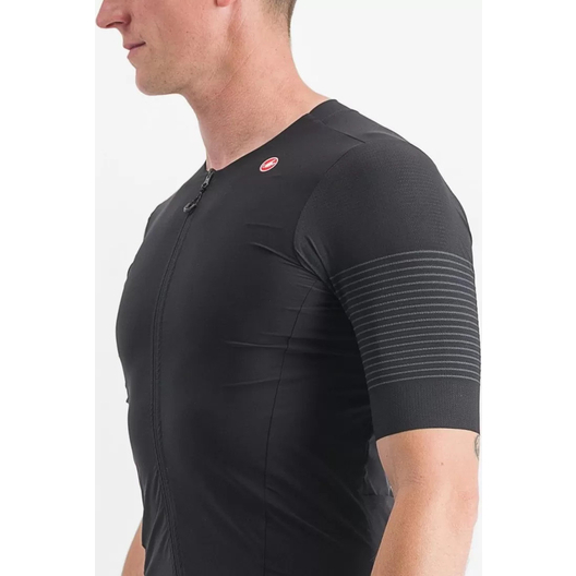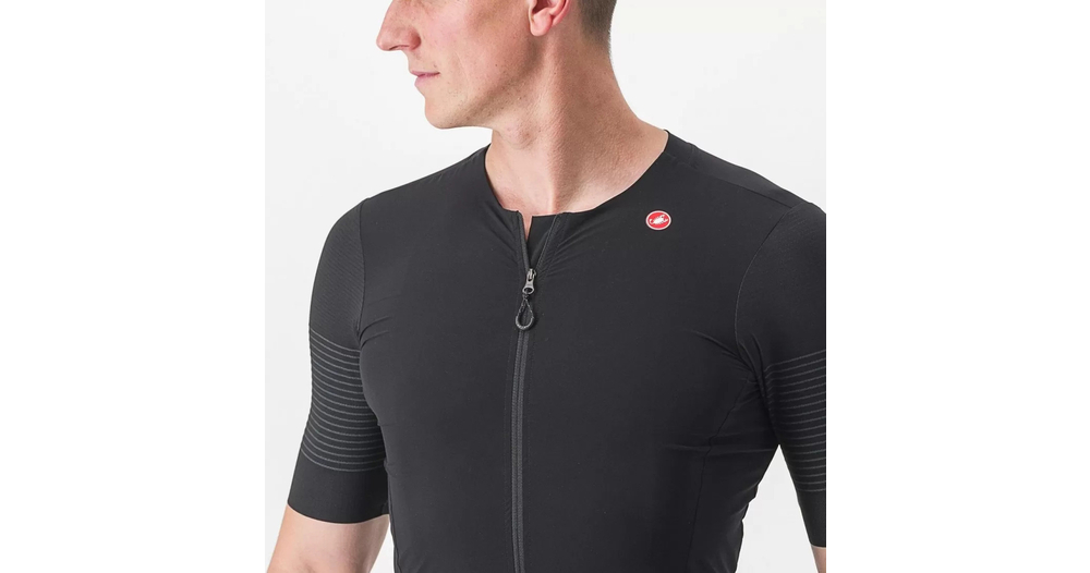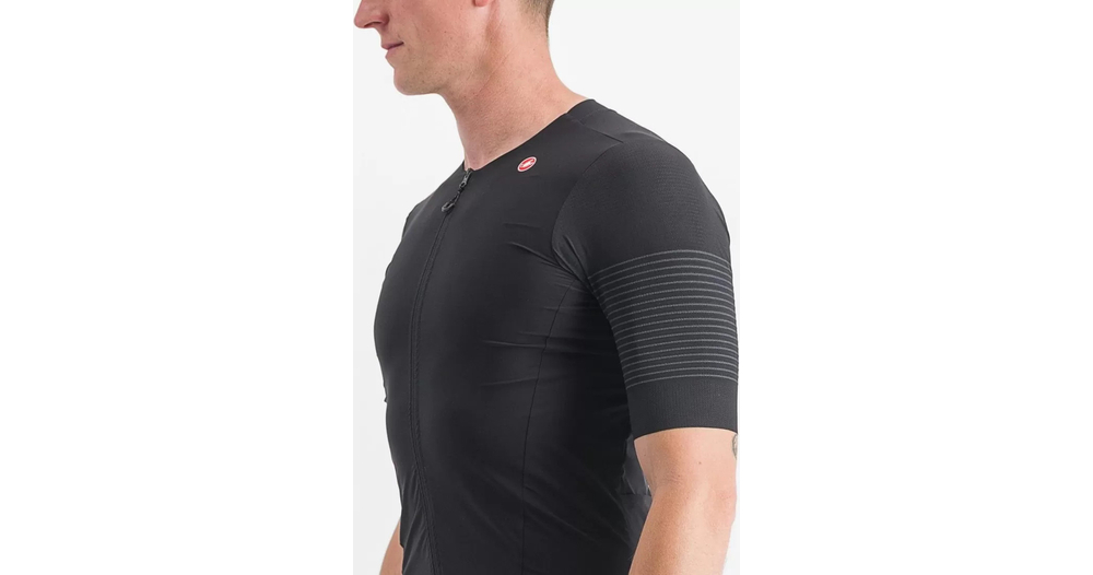 - Panneau en filet extensible tissé et côtelé sur les épaules pour assurer fraîcheur, confort et un aérodynamisme de pointe