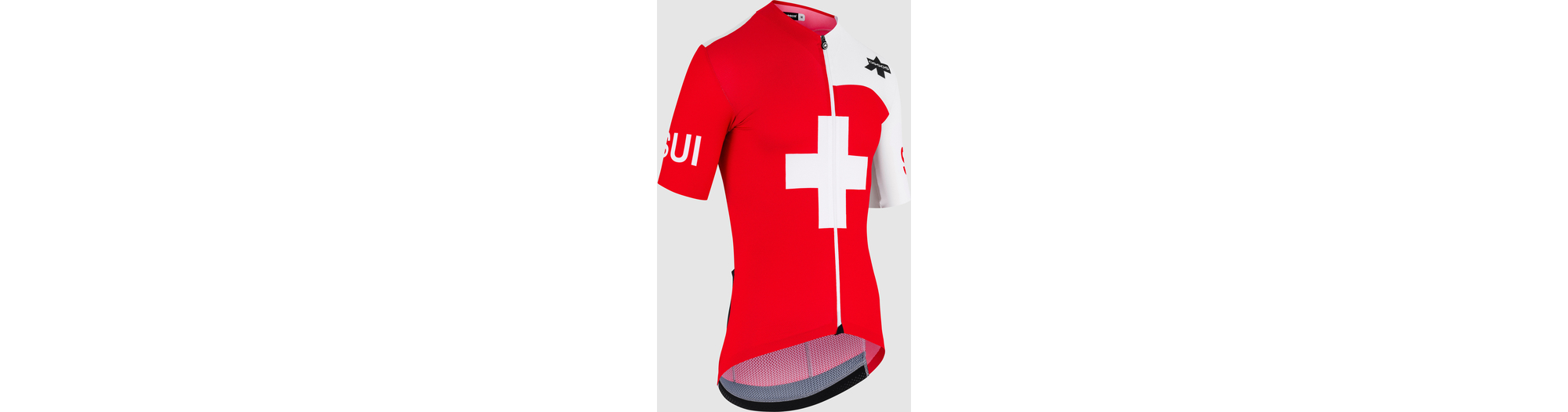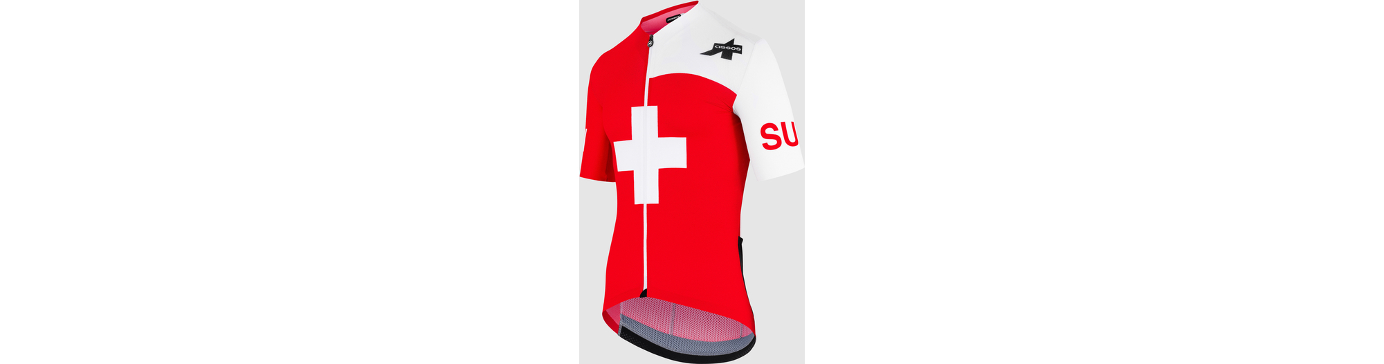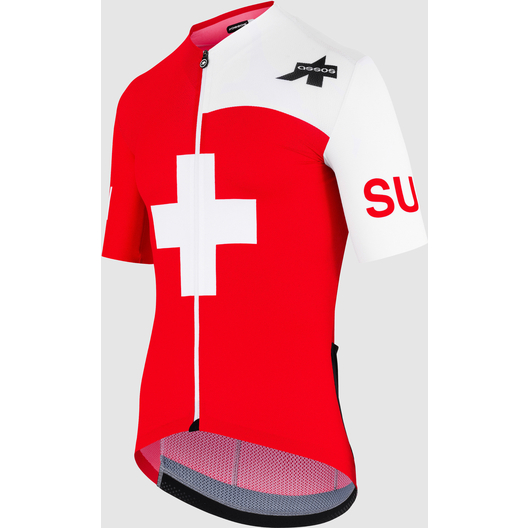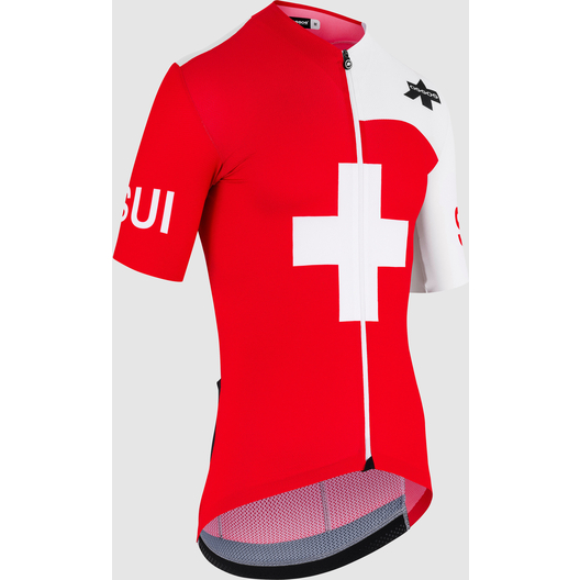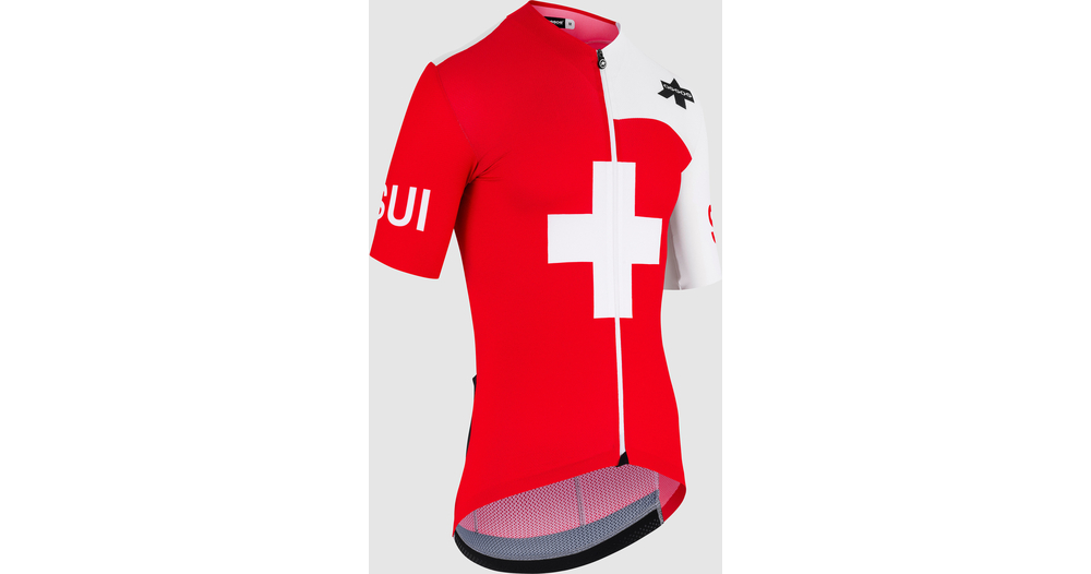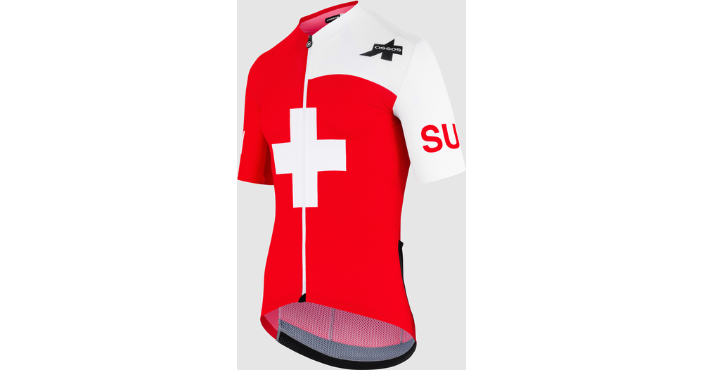 Le maillot de compétition de l'équipe nationale suisse. Il s'inscrit dans la lignée de la collection EQUIPE RS TARGA, compressive et aérodynamique.