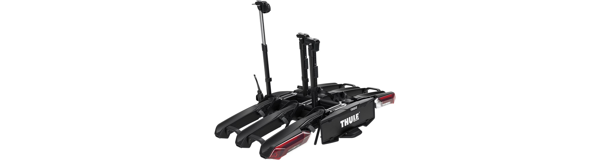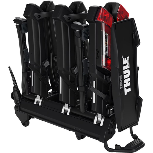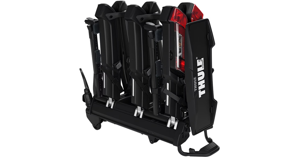 Thule Epos est un nouveau porte-vélos sur attelage entièrement pliable et inclinable équipé d'un système de fixation télescopique innovant conçu pour transporter des vélos de tout type et de toute taille, qu'il s'agisse de VTT, de VTC ou de vélos électriques.