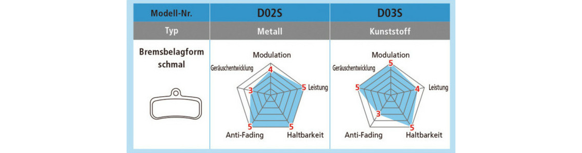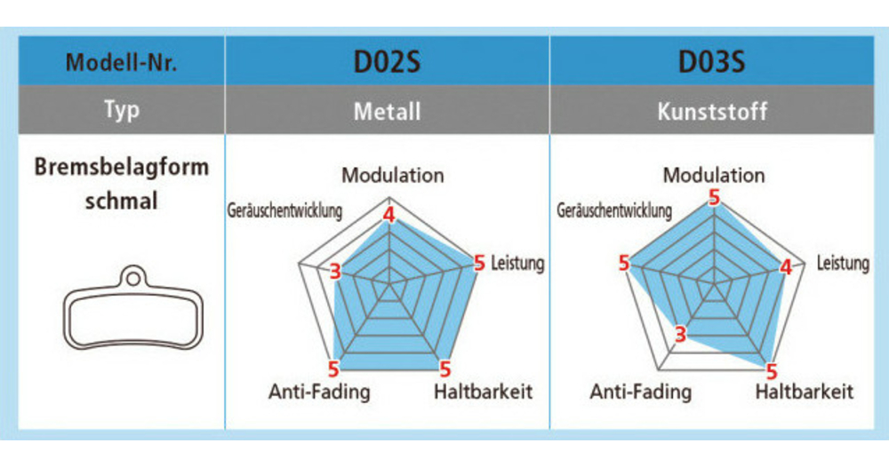 D03S: Résistance à l'usure environ 40% supérieure à celle du D01S Puissance de freinage prévisibleFonctionnement des freins fluide et silencieux