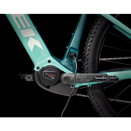 - Un cadre léger et solide en aluminium dans lequel s’encastre complètement une batterie de 625 Wh pour la pureté des lignes et la protection sur le trail, un moteur Bosch Performance CX offrant une assistance jusqu’à 25 km/h et une commande intelligente Bosch Intuvia. Une fourche RockShox Recon Silver RL, une transmission Shimano 1x12 et des roues Tubeless Ready Bontrager Kovee Comp 23.