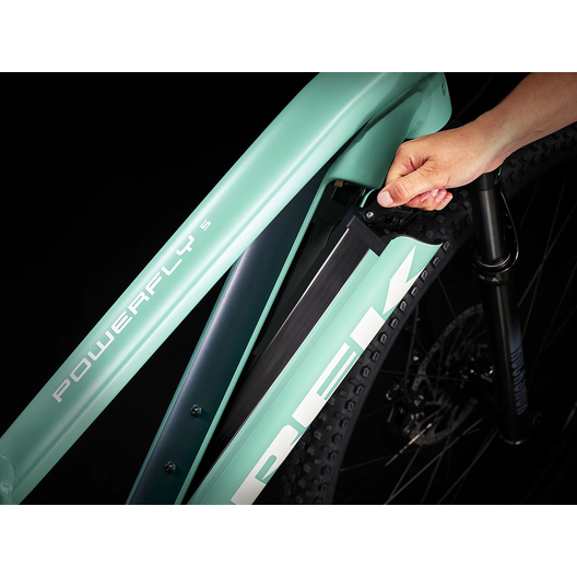 - Le système de batterie intégrée amovible de Trek affiche un look remarquable et est on ne peut plus convivial : il dissimule complètement la batterie dans le cadre afin de la protéger, il permet de retirer aisément la batterie sans outillage et laisse de l’espace pour la fixation d’un porte-bidon.