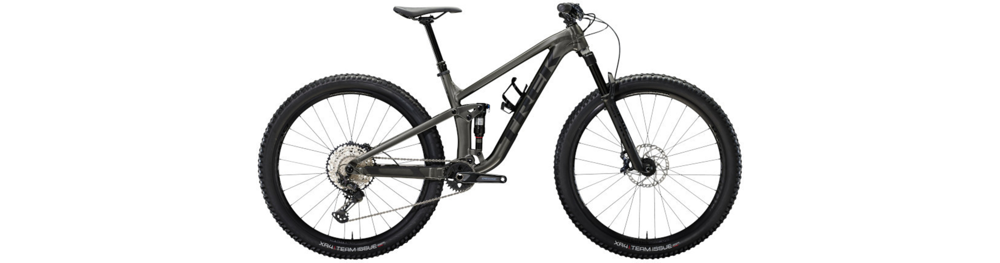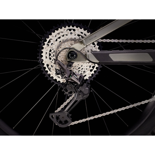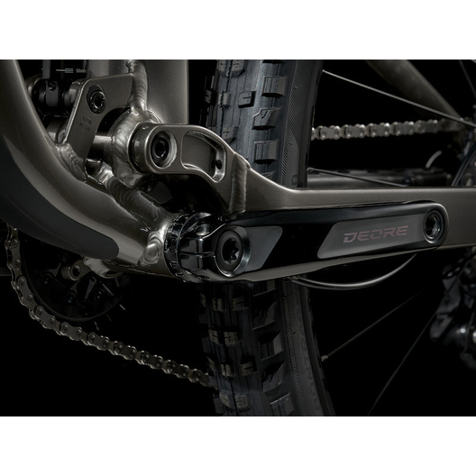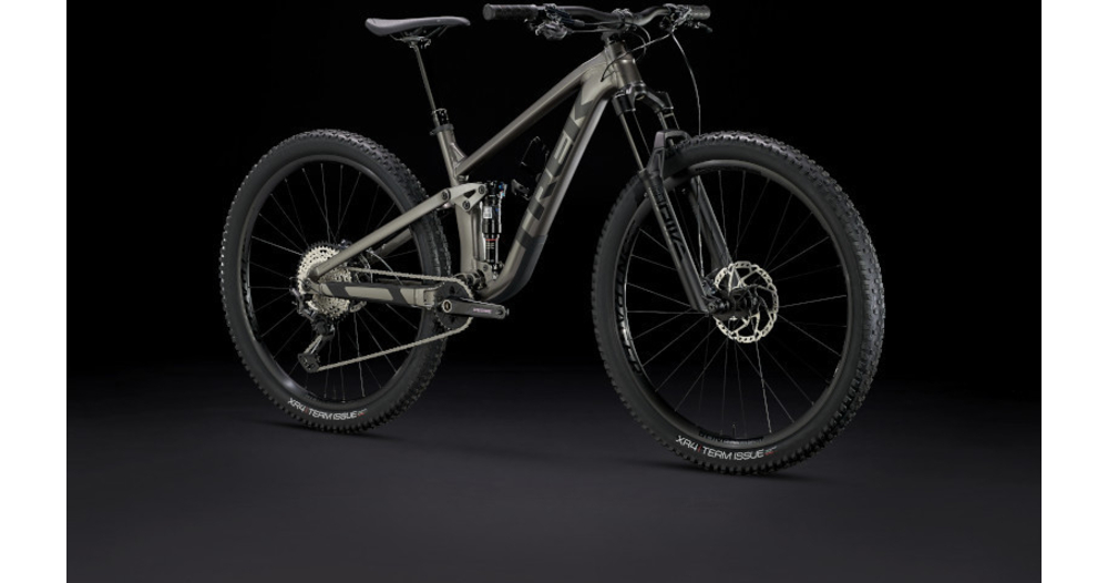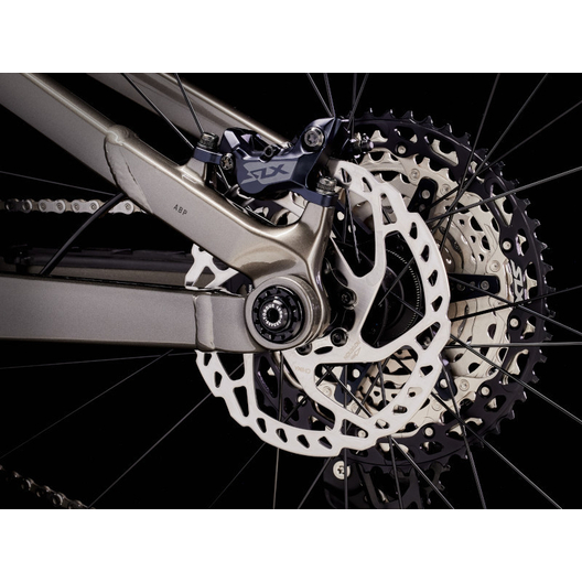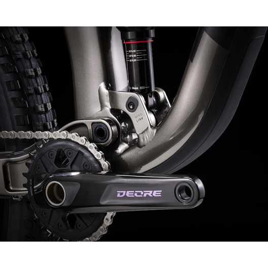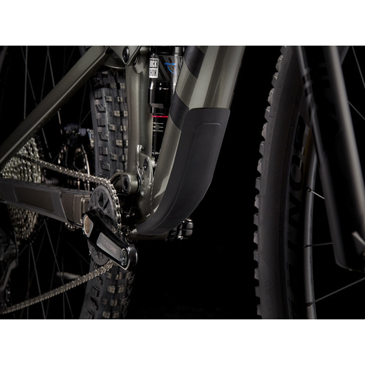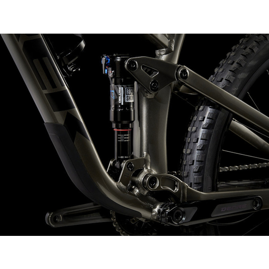 - Un cadre aluminium léger avec stockage interne, une fourche RockShox Pike de 130 mm de débattement avec ressort moelleux DebonAir, 115 mm de débattement à l’arrière avec un amortisseur RockShox Deluxe Ultimate RCT et une transmission Shimano XT. Avec en plus des freins à 4 pistons pour des descentes maîtrisées, des roues Bontrager Line Comp 30 complètement Tubeless Ready (produit d’étanchéité inclus) et une tige de selle télescopique Bontrager Line Dropper.