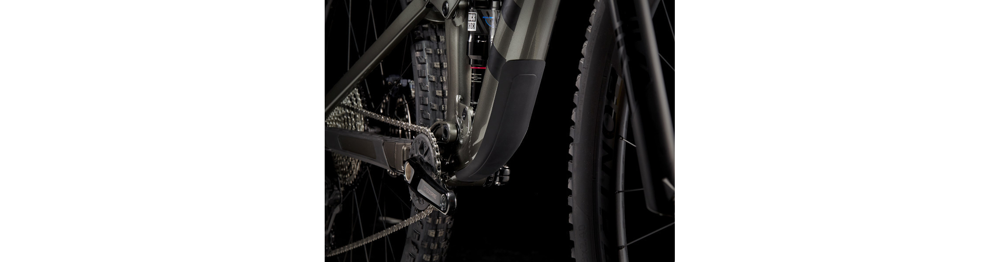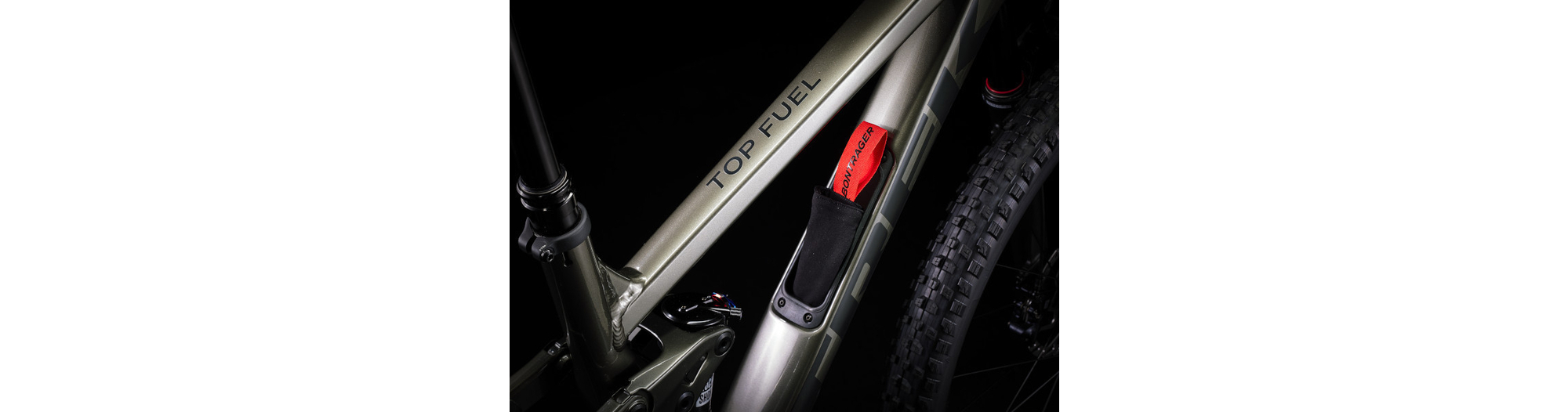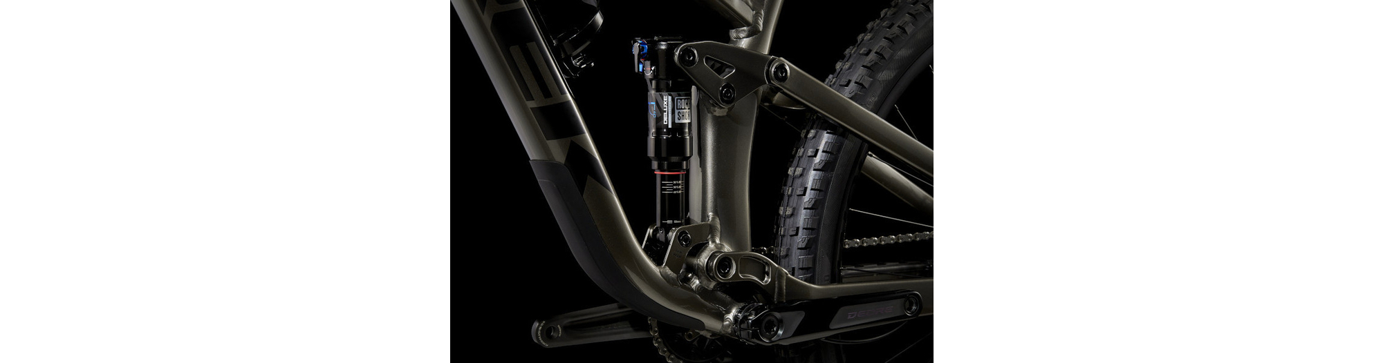 - Un cadre aluminium léger avec stockage interne, une fourche RockShox Pike de 130 mm de débattement avec ressort moelleux DebonAir, 115 mm de débattement à l’arrière avec un amortisseur RockShox Deluxe Ultimate RCT et une transmission Shimano XT. Avec en plus des freins à 4 pistons pour des descentes maîtrisées, des roues Bontrager Line Comp 30 complètement Tubeless Ready (produit d’étanchéité inclus) et une tige de selle télescopique Bontrager Line Dropper.