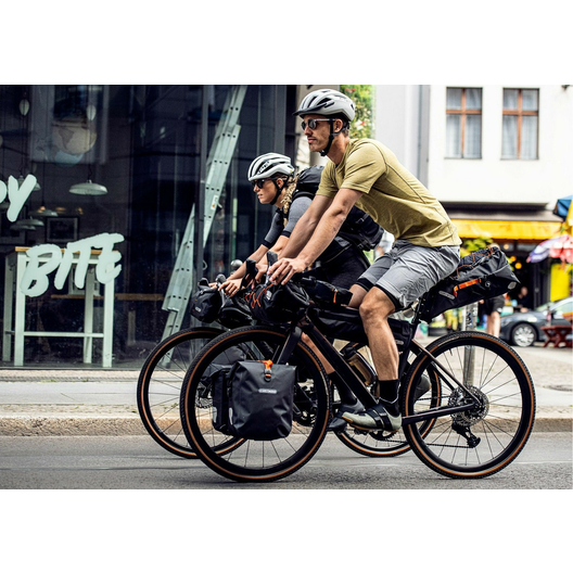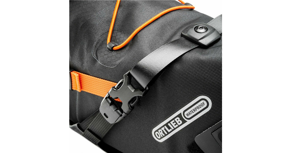 En route pour la prochaine micro-aventure ! Élément central de ton équipement de bikepacking, le Seat-Pack d'ORTLIEB se fixe simplement au montant de la selle grâce des fermetures auto-agrippantes de très forte adhérence. Effet secondaire pratique, la sacoche de selle fait simultanément office de garde-boue sur les terrains accidentés. Spacieuse et étanche à l'eau, la Seat-Pack garantit de conserver au sec tes fringues de rechange en toute fiabilité. Idée judicieuse, il suffit de détendre latéralement la fermeture par enroulement pour varier le volume, entre 8 et 16,5 litres, ou entre 7 et 11 litres, selon la durée de ton excursion. Une soupape supplémentaire permet de la comprimer facilement et rapidement pour disposer d’une sacoche encore plus compacte. Pour une sortie d'une journée, le Seat-Pack est idéal pour remplacer ton sac à dos, que tu roules sur un vélo cross ou un VTT, sur un vélo de course ou un VTT électrique. Cette sacoche est disponible en deux tailles.