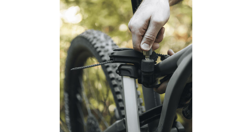 Montage et réglage aisés et rapides du porte-vélo sur la boule d'attelage avant de fermer la poignée de serrage grâce à la fixation auto-stabilisante.
