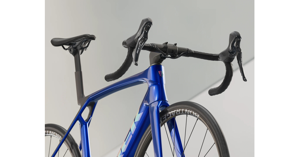 Léger et aérodynamique, le Madone SL 5 8e gén. donne accès à une technologie de compétition à prix avantageux. Il offre un avantage aérodynamique similaire au Madone SLR 8e gén., plus onéreux, mais se compose d’un carbone OCLV 500 plus économique et d’un cockpit en deux pièces à acheminement interne des câbles. Construit pour la course, il arbore une géométrie qui favorise la vitesse dans les sprints tout en préservant la confiance et le contrôle en descente. Le groupe Shimano 105 maintient un prix avantageux tout en délivrant des changements de vitesses mécaniques fiables et précis.