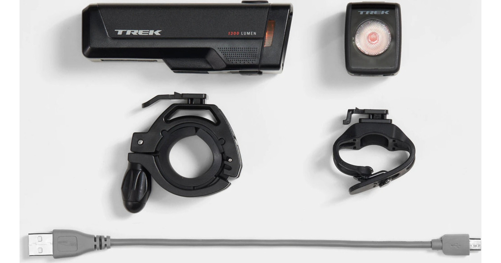 - Inclut les feux Ion Pro RT et Flare RT, des fixations avant et arrière et un câble de charge micro-USB