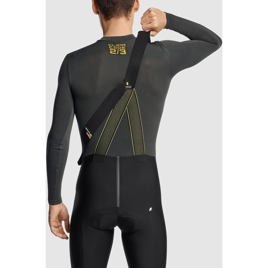 - La coupe seconde peau maintient le textile contre le corps, maximisant les propriétés thermorégulatrices et la gestion de l’humidité en l’évacuant pour un microclimat chaud et sec. La construction en une seule pièce élimine les coutures et les frottements.