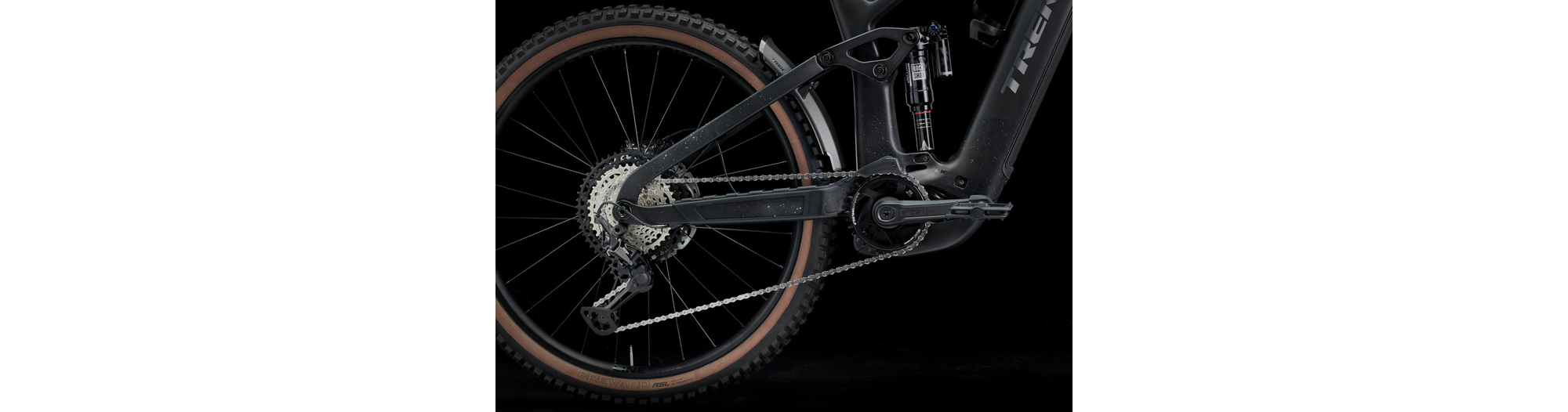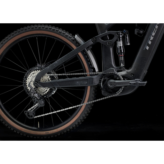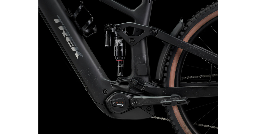 Un cadre en OCLV Mountain Carbon avec le système Bosch Performance CX (85 Nm, 250 W) et une impressionnante batterie intégrée amovible RIB 2.0 de 800 Wh. Une fourche RockShox ZEB Ultimate de 160 mm avec ressort DebonAir et une cartouche Charger 3 RC2, et un amortisseur arrière RockShox Super Deluxe Ultimate. Des roues tubeless ready Bontrager Line Comp 30, une transmission Shimano XT 12 vitesses, des freins à disque hydrauliques Shimano à 4 pistons et une tige de selle télescopique à acheminement de câble interne.