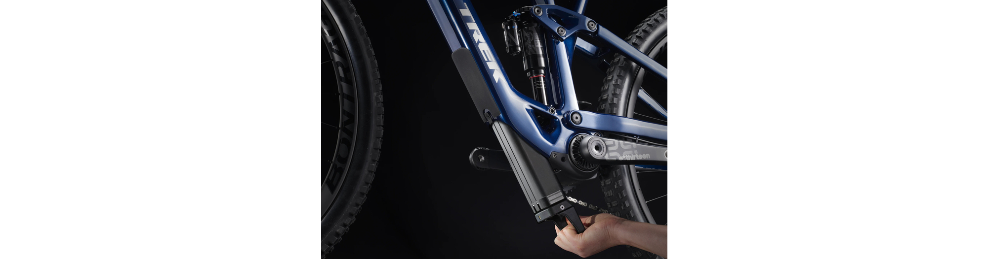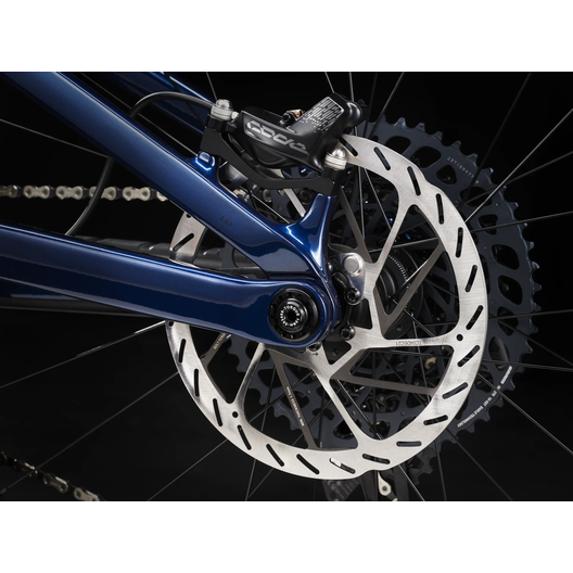 Un cadre OCLV Mountain Carbon avec une batterie de 360 Wh complètement intégrée et une transmission à démultiplicateur harmonique à anneau à broches, un port de charge intelligent, un affichage DEL intégré et une commande au guidon discrète. Sans oublier une fourche RockShox Lyrik Select+ de 150 mm de débattement avec ressort DebonAir et amortisseur Charger 2.1 RC et une suspension arrière RockShox Super Deluxe Select+ de 140 mm de débattement. Et la cerise sur le gâteau ? Une transmission SRAM GX AXS sans fil qui garantit un poste de pilotage minimaliste et sans encombrement.