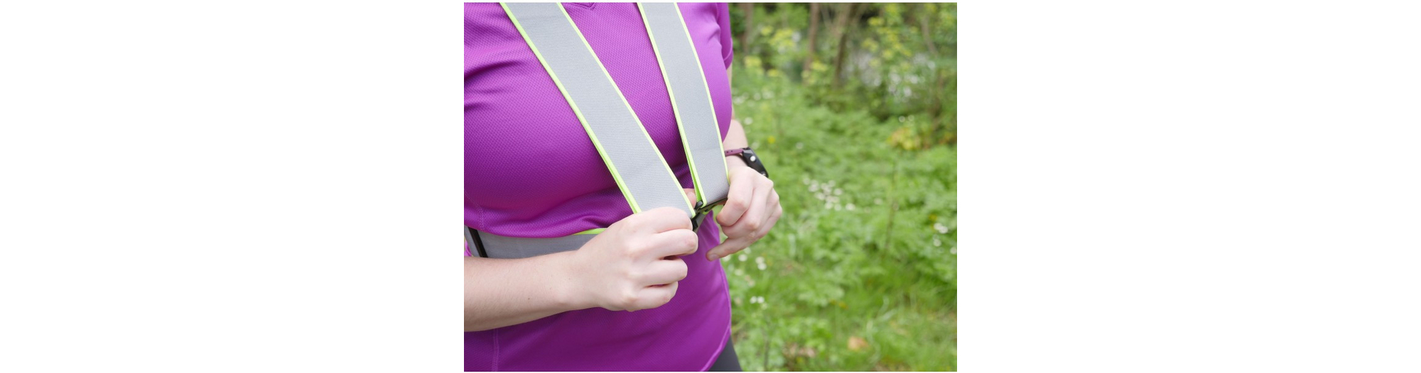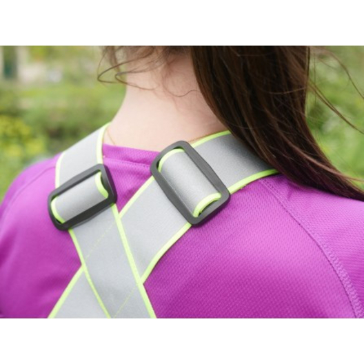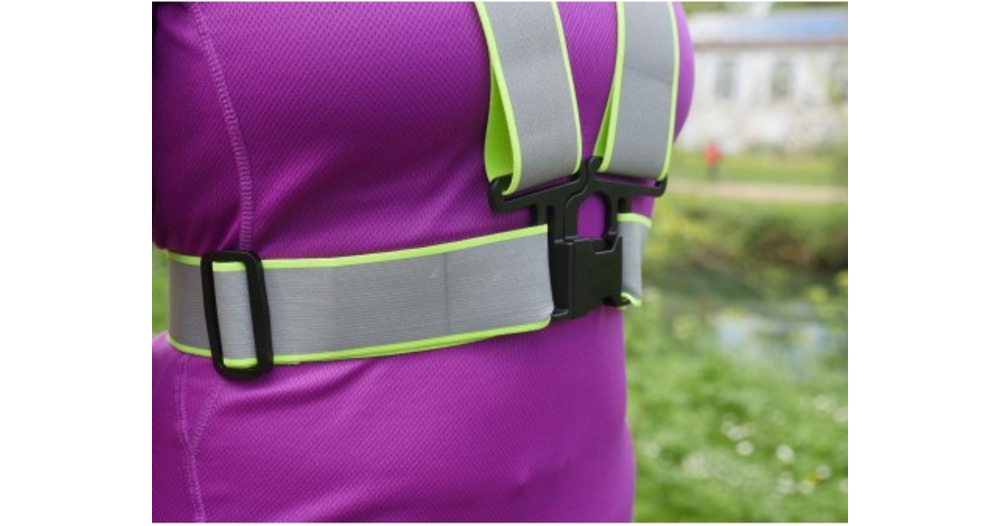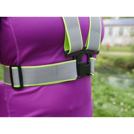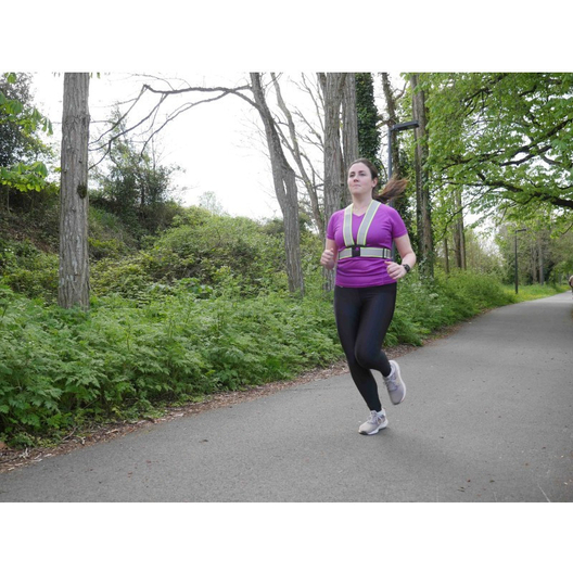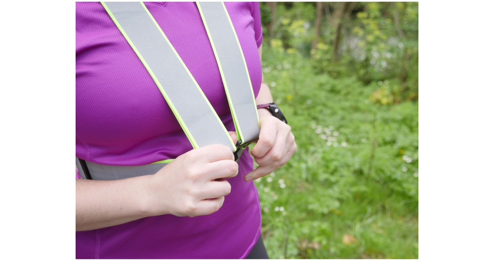 Le harnais Néo Viz de la marque R FLECT est conçu en tissu fluorescent avec des bandes réfléchissantes afin de maximiser la visibilité des coureurs lors de leurs déplacements nocturnes.