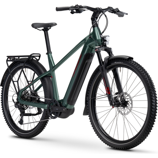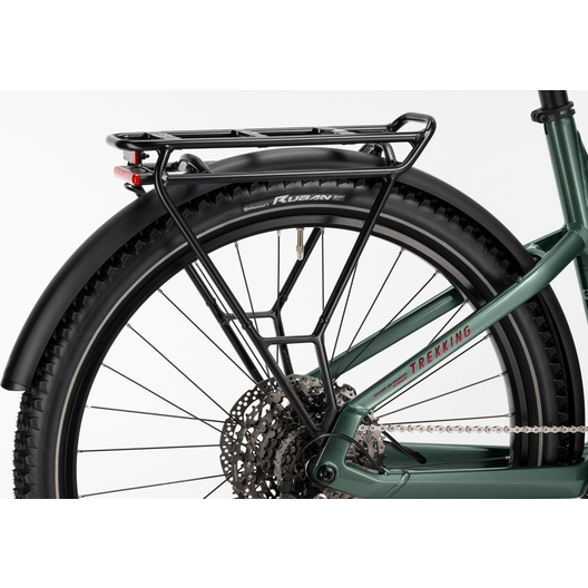 Un vélo électrique pour tout faire. Notre TREKKING 5 est un véritable polyvalent. Avec lui, vous pouvez tout faire : aller au travail, faire une balade après le boulot ou partir pour une randonnée de plusieurs jours avec des sacoches et autres accessoires. Quoi que vous prévoyez : Le moteur Yamaha PW-S2 vous fournira toujours le soutien nécessaire. Avec la batterie de 720 Wh, vous aurez suffisamment de réserves, même si le trajet est plus long que prévu. Des composants de transmission et de freinage fiables Shimano, une suspension de 100 mm à l'avant ainsi qu'une potence réglable assurent sécurité et confort. Et avec les pneus larges à crampons, vous êtes également bien équipés pour des sorties tout-terrain faciles. L'équipement conforme conforme au code de la route français, composé d'un porte-bagages, d'un éclairage et de garde-boue, complète la prestation de ce vélo trekking polyvalent. Un vélo électrique qui est prêt pour toutes les aventures.