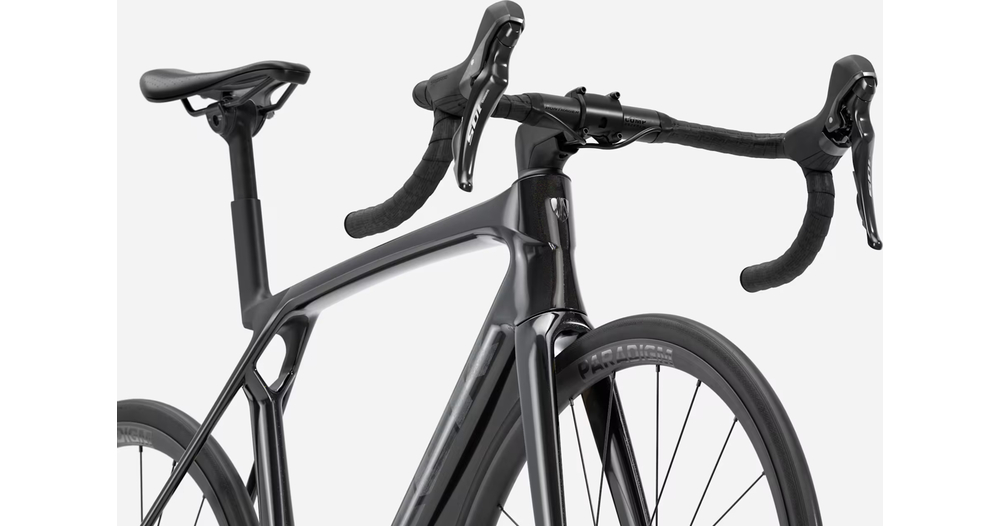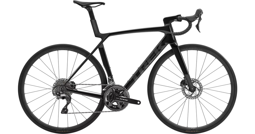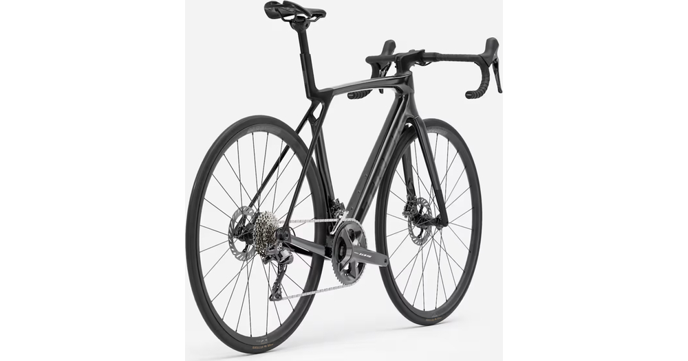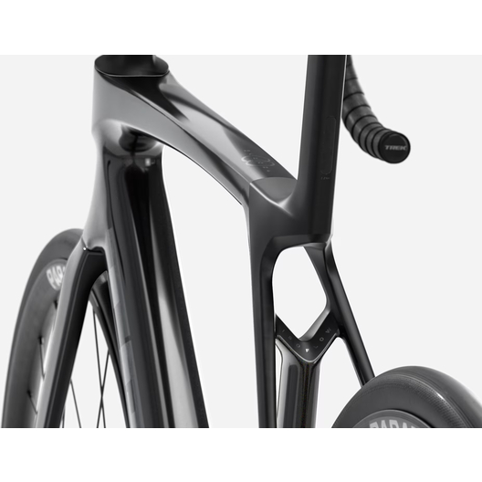 Madone 8e gén. tout en carbone, douille de direction conique carbone, acheminement interne des câbles de frein, freins à disque à fixation Flat-Mount, axes traversants cannelés de 12x100 mm