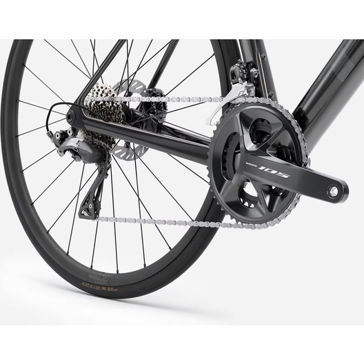 Léger et aérodynamique, le Madone SL 5 8e gén. donne accès à une technologie de compétition à prix avantageux. Il offre un avantage aérodynamique similaire aux modèles Madone SLR 8e gén., plus onéreux, mais se compose d’un carbone OCLV 500 plus économique et d’un cockpit en deux pièces à acheminement interne des câbles. Le groupe Shimano 105, le cintre en alliage et les roues en alliage maintiennent un prix avantageux tout en délivrant des changements de vitesse mécaniques fiables et précis.