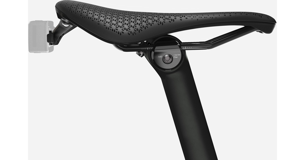 Sa coque en nylon composite résistant et ses rails en austénite forment la base de la structure en treillis AirLoom imprimée en 3D, qui offre confort et soutien tout au long du cycle de pédalage.
