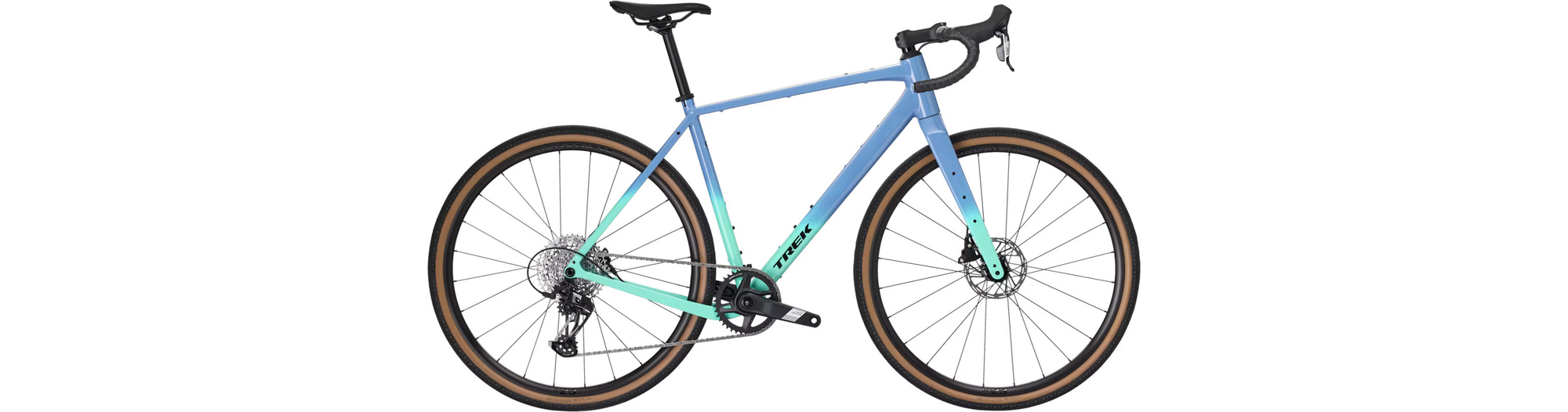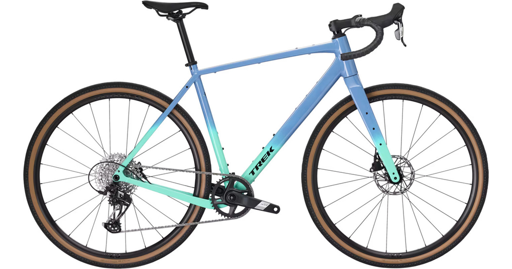 Cadre Alpha aluminium série 300 avec fourche en carbone et dégagement pour pneus de 50 mm maximum. Transmission SRAM Apex XPLR 12 vitesses améliorée, freins à disque hydrauliques, roues Bontrager Paradigm avec pneus Bontrager Girona Pro tubeless-ready, et multiples fixations pour sacoches, porte-bagages et autres accessoires.