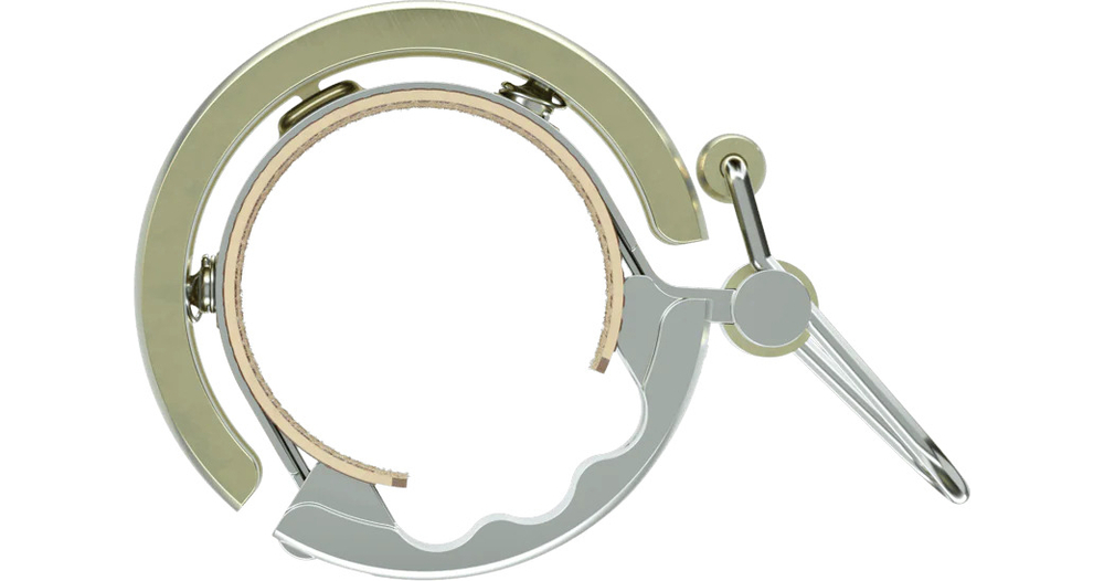 Sonnette à vélo réussie, qui ne ressemble pas à une sonnette conventionnelle Version de luxe avec un look métal et cuirTrès agréable son