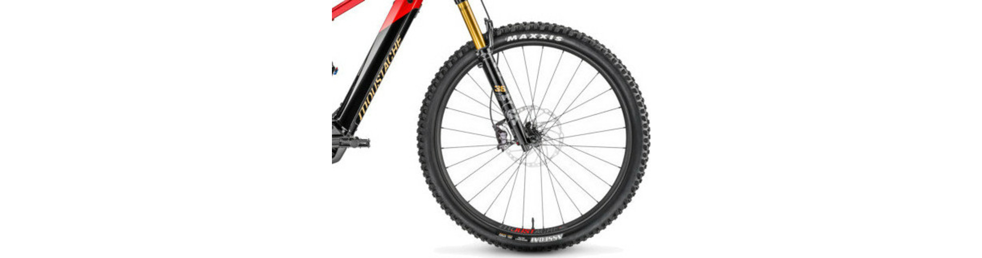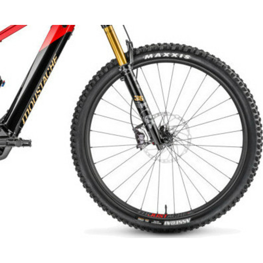 - Moustache asymétrique, Aluminium 6061E, soudée, double paroi, 28 trous, 29", largeur intérieur 31mm, montées avec valves et flap TubelessRayons à triple épaisseur, écrous aluminium anti-desserrage