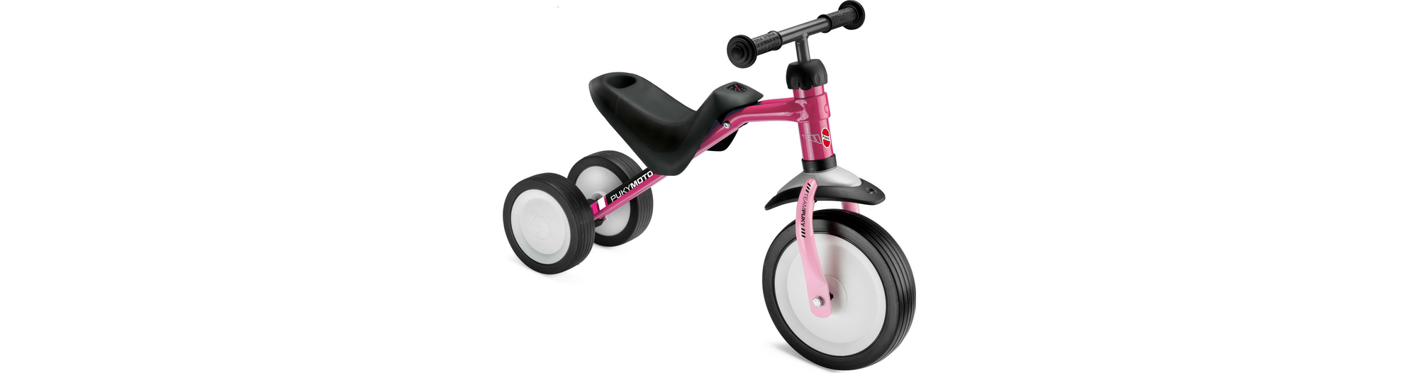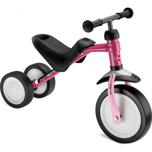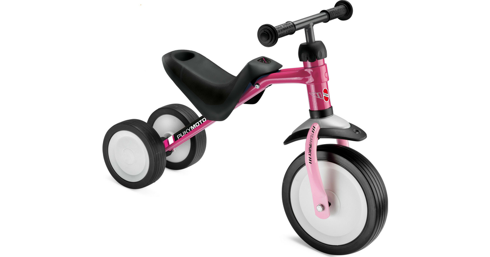 Le Tri-cycle Puky Pukymoto est un petit vélo d'apprentissage à trois roues. À mi-chemin entre un porteur 2-roues traditionnel et un porteur plus sécurisant à 4 roues, il offre un bon compromis entre stabilité et conduite plaisante et dynamique !