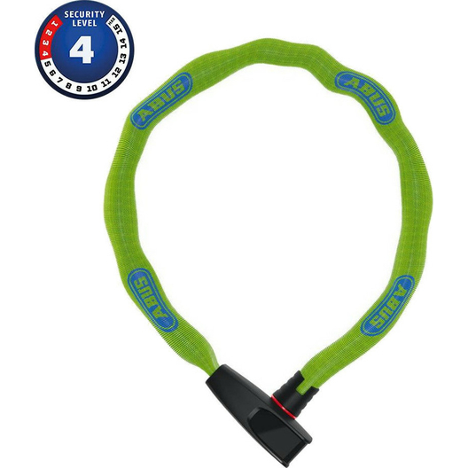 Chaîne à maillons carrés de 6 mm de diamètre recouverte d´un gainage en tissu La chaîne est fabriquée en acier spécial cémenté Cylindre ABUS automatique équipé d'une protection anti-perçage et d'une…