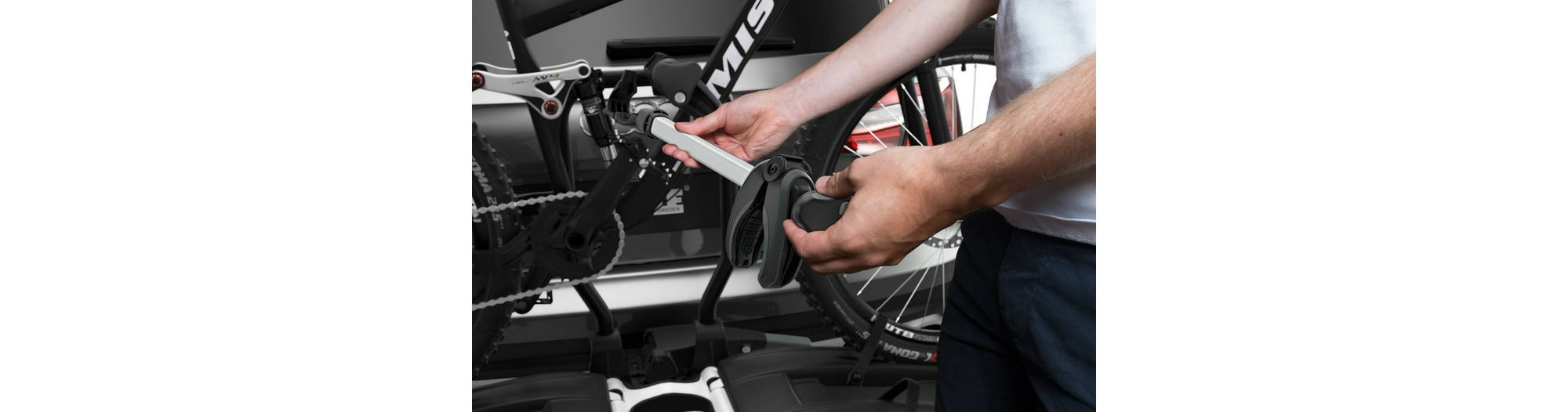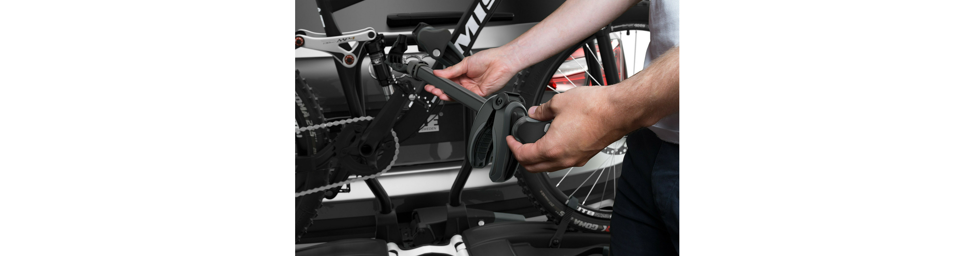 - Montage aisé des vélos grâce aux bras de fixation amovibles avec limiteur de couple de serrage Thule AcuTight verrouillable, qui émet un clic lorsque le serrage optimal est atteint