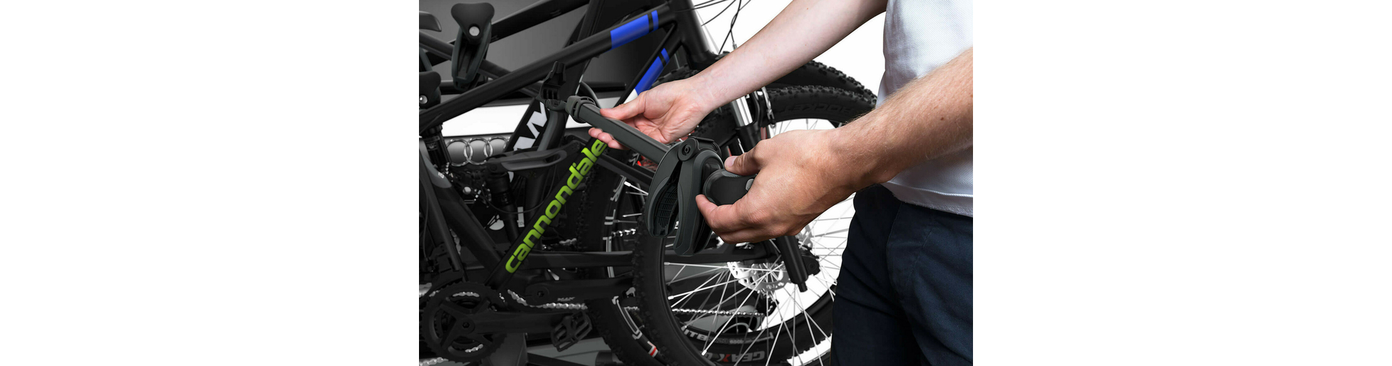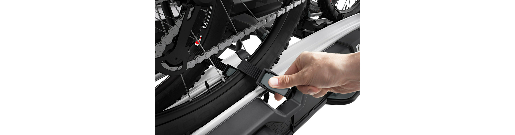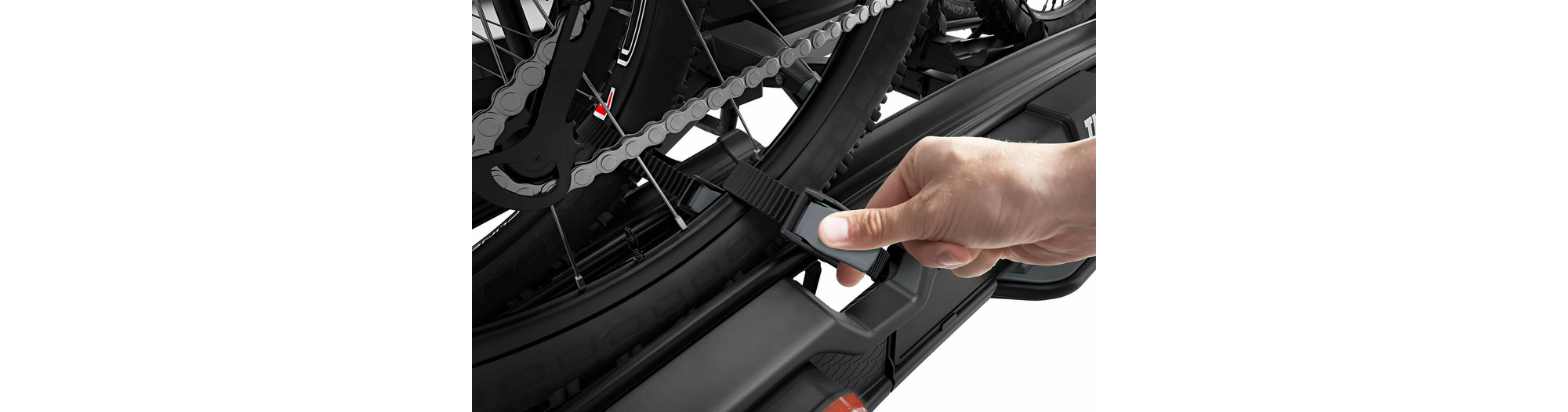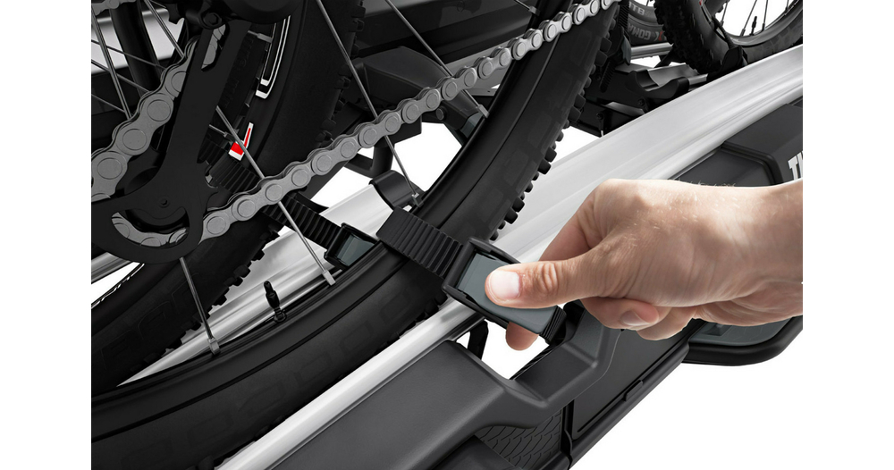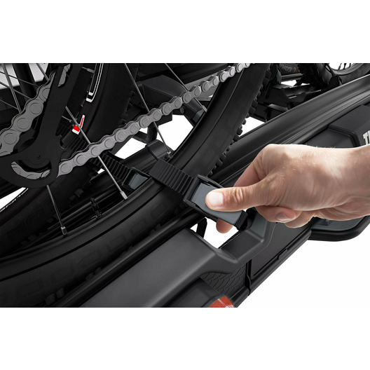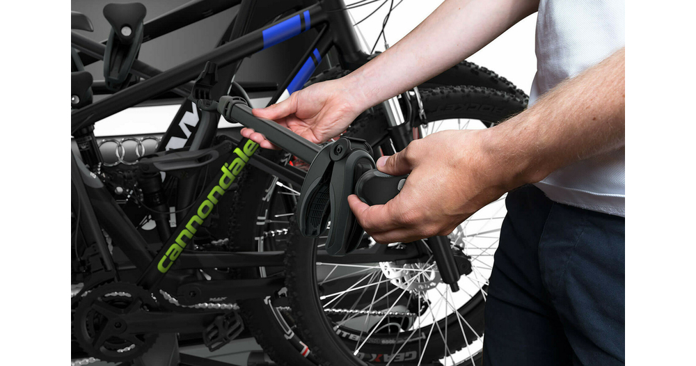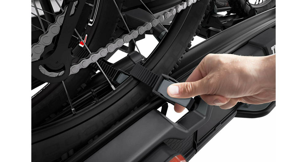 - Montage aisé des vélos grâce aux bras de fixation amovibles avec limiteur de couple de serrage Thule AcuTight émettant un « clic » lorsque le serrage optimal est atteint