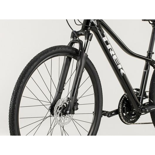 Le Dual Sport 3 pour femmes est une vélo hybride très performant doté de composants de niveau supérieur pour des longues sorties sur diverses surfaces, depuis les rues de la ville jusqu’aux chemins de gravier. Le cadre léger avec le meilleur dégagement d’entrejambe de sa catégorie peut être adapté aisément à votre style d’utilisation avec des porte-bagages, des garde-boue, un compteur de fitness, des feux, etc. Qui plus est, les points de contact conçus spécialement pour les femmes, la suspension à l’avant, les jantes Tubeless Ready et les pneus anti-crevaison vous mettent en confiance pour vous lancer dans de plus grandes aventures.Spécifications techniques :