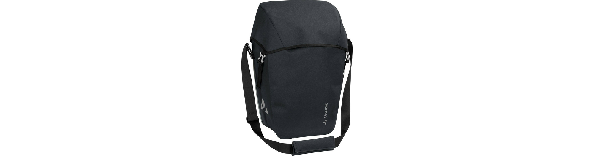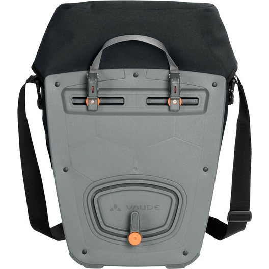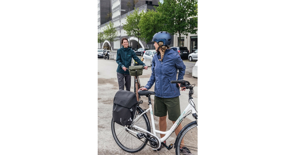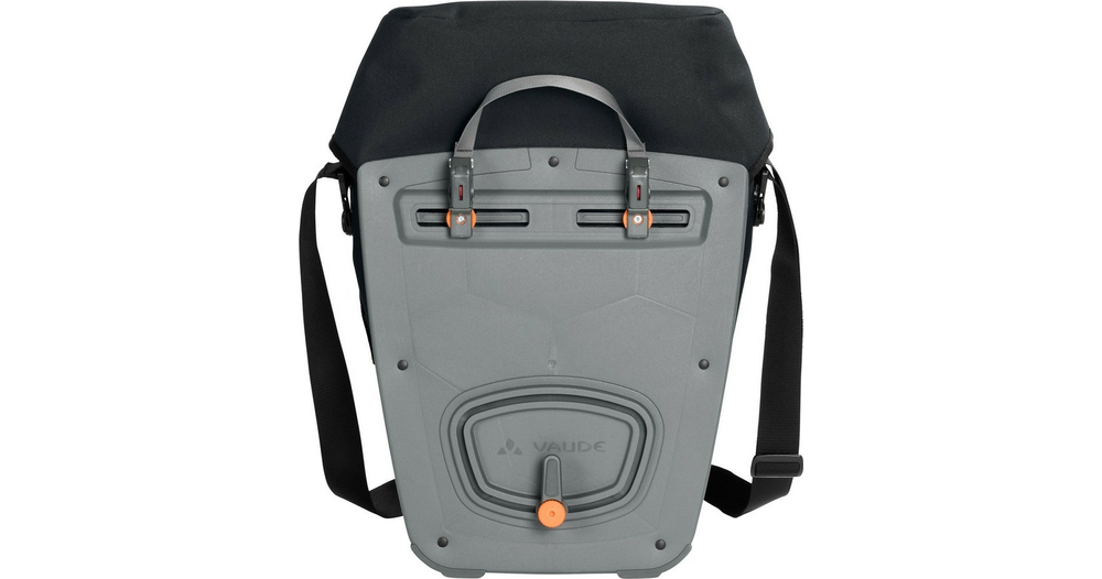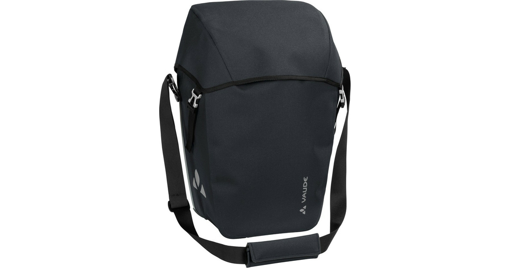 La ville d’Obereisenbach vous salue ! Cette sacoche cycliste urbaine avec fermeture à rabat est climatiquement neutre et fabriquée dans la petite ville d’Obereisenbach dans le sud de l’Allemagne, où se trouve le siège de Vaude. La matière résistante à aspect textile est totalement sans PVC et soudée de manière étanche ce qui rend l’utilisation d’une housse de pluie inutile. Le design de la sacoche est épuré et elle est équipée d’un grand compartiment principal avec soufflet d’élargissement. Ces sacoches sont fixées à droite et à gauche du porte-bagages arrière et stables grâce au système QMR 2.0 et à une plaque rigide. Elles sont ajustables à l’aide de petites roues et peuvent rapidement et facilement être fixées et enlevées. Elles peuvent être attachées directement au crochet QMR en utilisant tout simplement un cadenas à vélo. Grâce à la bandoulière livrée avec, ce modèle peut être confortablement porté sur l’épaule. Des éléments réfléchissants garantissent une meilleure visibilité sur la route. Contenu: une sacoche (single).
