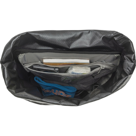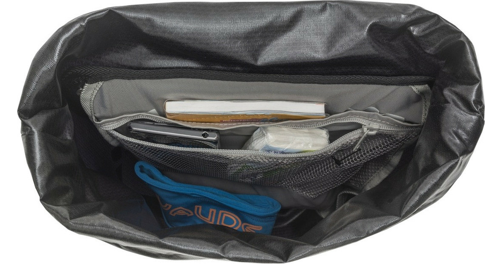Attention poids léger ! Ultralégère, le sacoches pour roue avant Aqua Front Light est en effet dépourvue de tout lestage inutile. Les adeptes du cyclisme connaissent bien le scénario : on a gagné quelques centaines de grammes sur le bagage et les sacoches à vélo viennent alourdir l’ensemble. L’Aqua Front Light est conçue dans une combinaison ingénieuse de matériaux. La bâche 2D soudée est plus mince mais tout aussi solide que les sacs plus lourds de la série Aqua. Au lieu d’un système de compression sophistiqué, on utilise une cordelette frontale permettant le rangement simple et rapide des vestes, t-shirts et autres vêtements. En plus d’être parfaitement adaptée aux aventures à vélo et aux cyclistes exigeants, l’Aqua Front Light constitue, en combinaison avec sa bandoulière, un accessoire idéal pour les navetteurs. Le sacoches pour roue avant Aqua Light est fabriquée en Allemagne, sans aucun PVC et conformément aux critères Greenshape 2.0. Contenu : deux sacoches (paire).