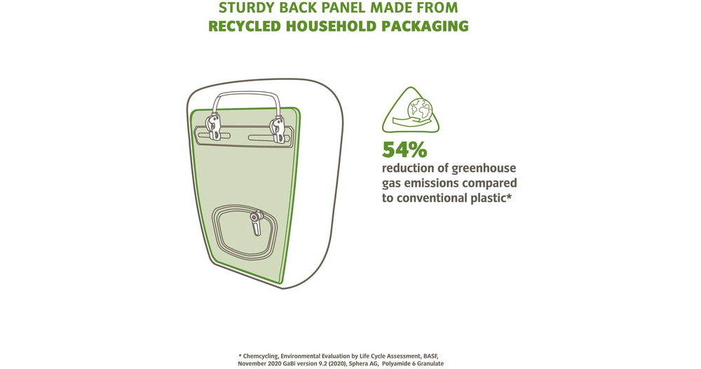 ReCycle Pro – le nom est ici tout un programme et notre point fort pour avoir bonne conscience ! Nos concepteurs sont parvenus à obtenir la fabrication de tous les composants de fixation dans une matière synthétique recyclée. La plaque dorsale rigide est composée à 64 % de matériau recyclé à partir de déchets ménagers. Le matériau robuste du sac au look textile recyclé à 100 % est entièrement exempt de PVC et doté de jointures imperméables. La sacoche tendance au design épuré est munie d’une fermeture à rabat rapide et simple, d’un grand compartiment principal et d’une pochette zippée. La bandoulière amovible et des logos réfléchissants viennent compléter l’équipement. La sacoche faisant partie de notre gamme « Made in Germany », elle est le fruit d’une fabrication neutre pour le climat en Allemagne au siège de la société. .