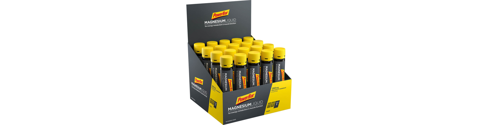 Les athlètes ont besoin d’un apport suffisant en magnésium. Le magnésium est un minéral important pour réguler le métabolisme énergétique et la fonction musculaire. Le magnésium aide également à réduire la fatigue et il est l’un des 5 électrolytes dont la perte par la transpiration est la plus importante. L’ampoule Magnesium Liquid de PowerBar apporte 250 mg de magnésium de haute qualité et de la vitamine B6. Pratique, elle se loge dans n’importe quelle poche.