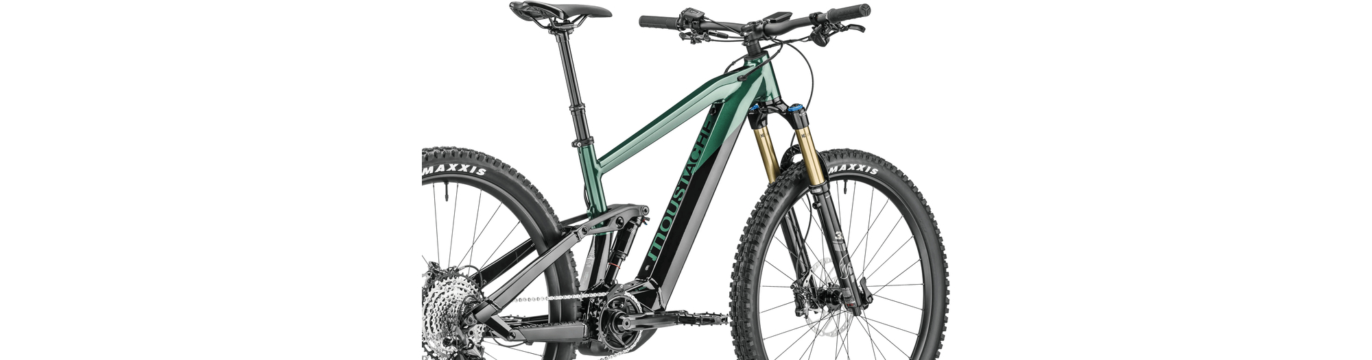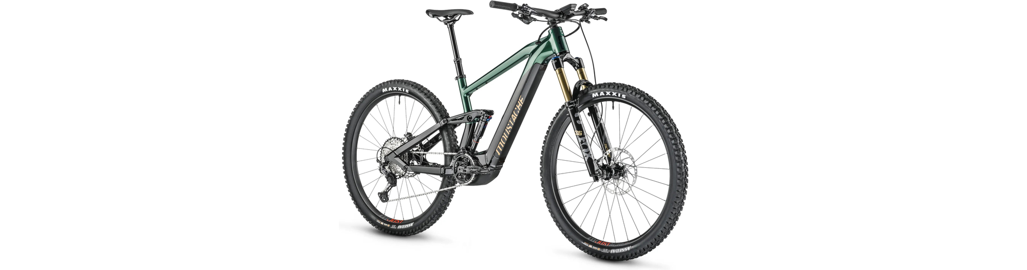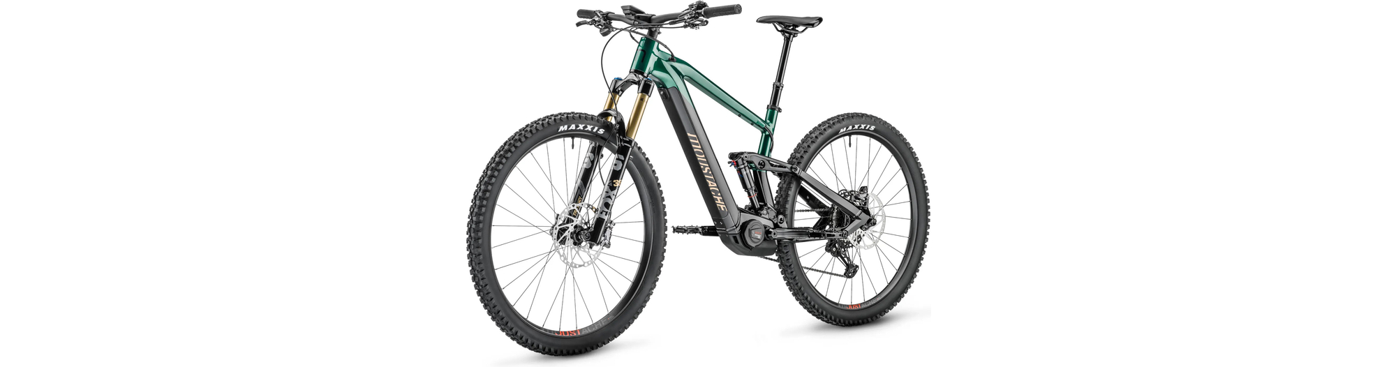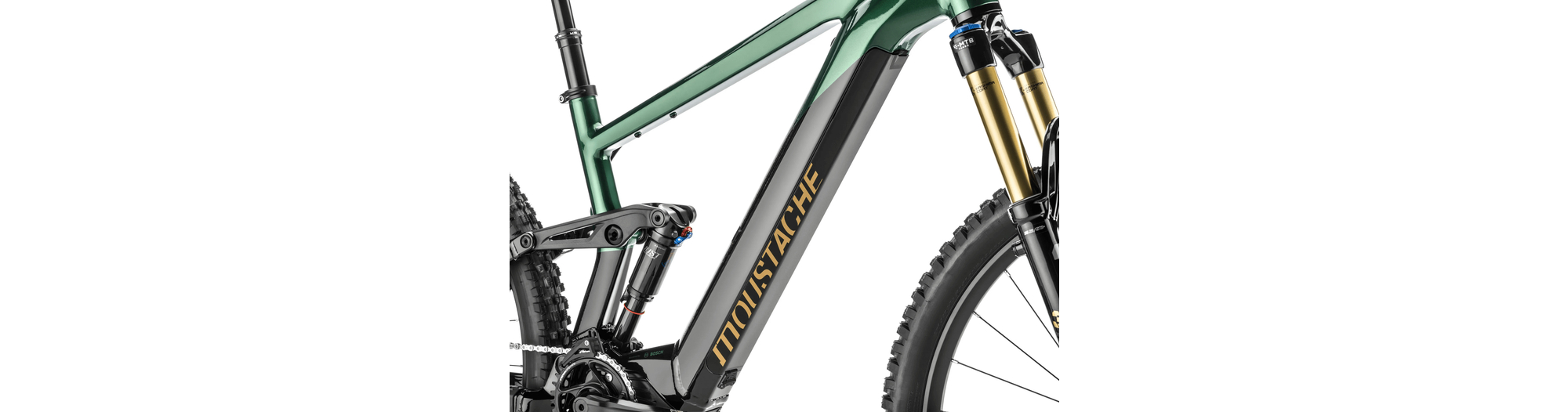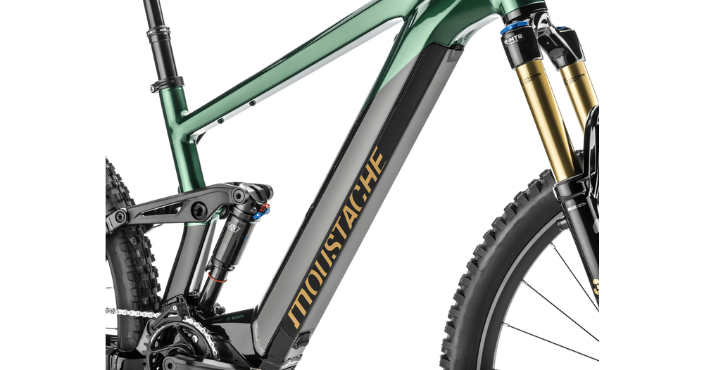- Amortisseur à air Moustache Magic Grip Control offrant 150 mm de débattement, 2 positions de roulage, un contrôle dynamique du rebond, pour un confort de pilotage combinée à une traction épatante.