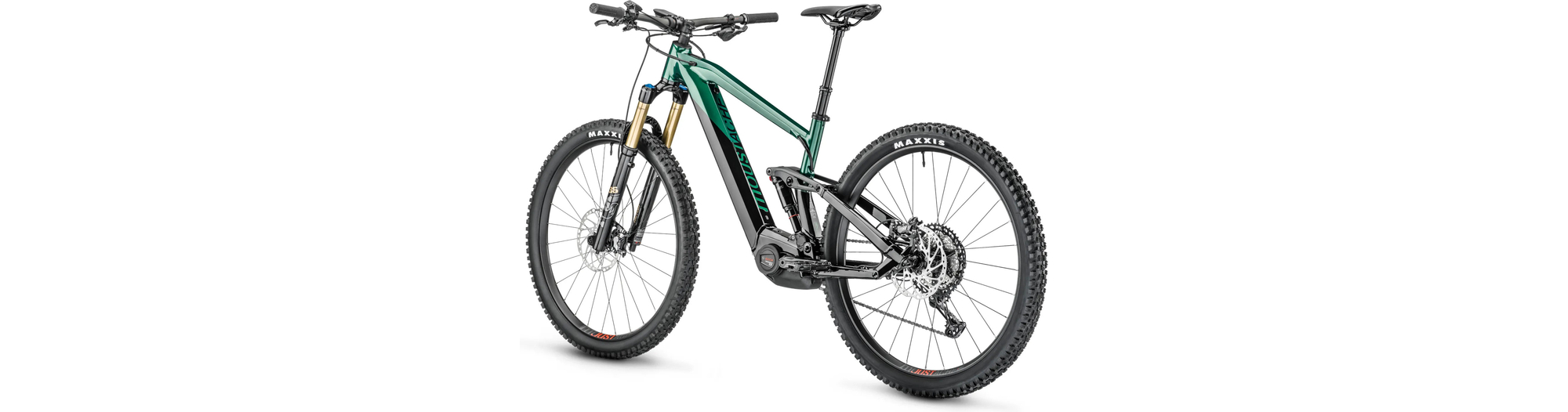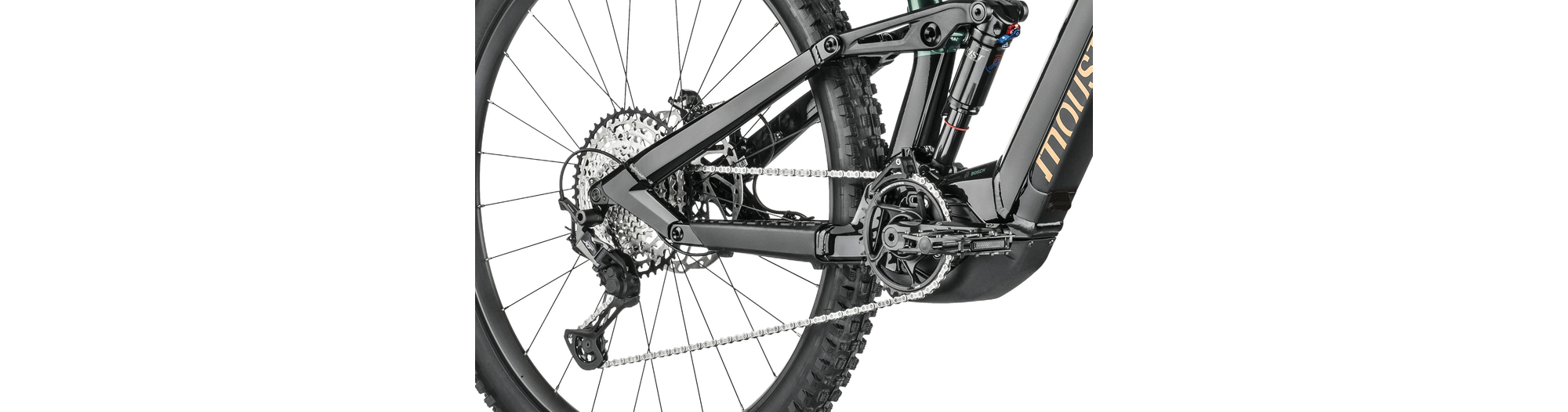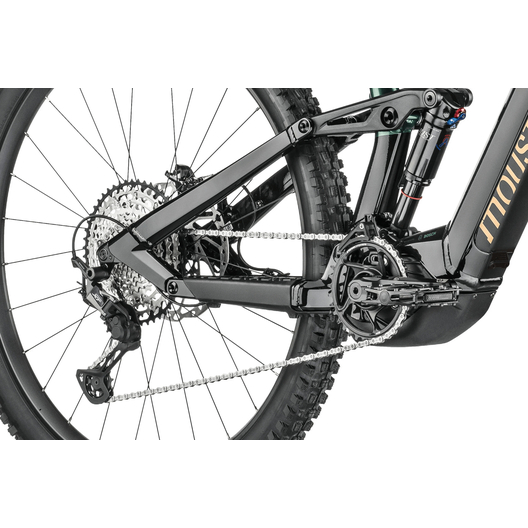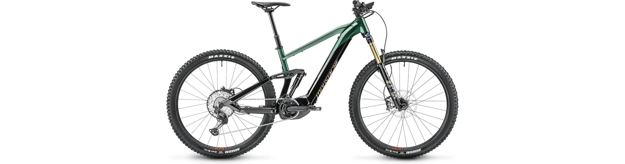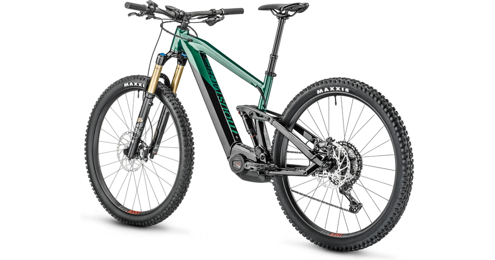 - Amortisseur à air Moustache Magic Grip Control offrant 150 mm de débattement, 2 positions de roulage, un contrôle dynamique du rebond, pour un confort de pilotage combinée à une traction épatante.