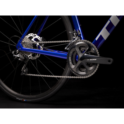 - Un cadre et une fourche légers et aérodynamiques en OCLV Carbon Série 500, une transmission Shimano 105 11 vitesses complète, de puissants freins à disque hydrauliques Shimano à fixation Flat Mount, l’acheminement interne des câbles pour des lignes nettes et des roues Bontrager Paradigm SL tubeless ready.