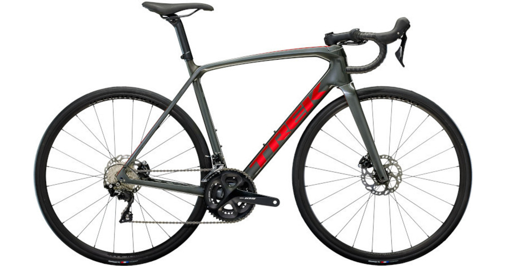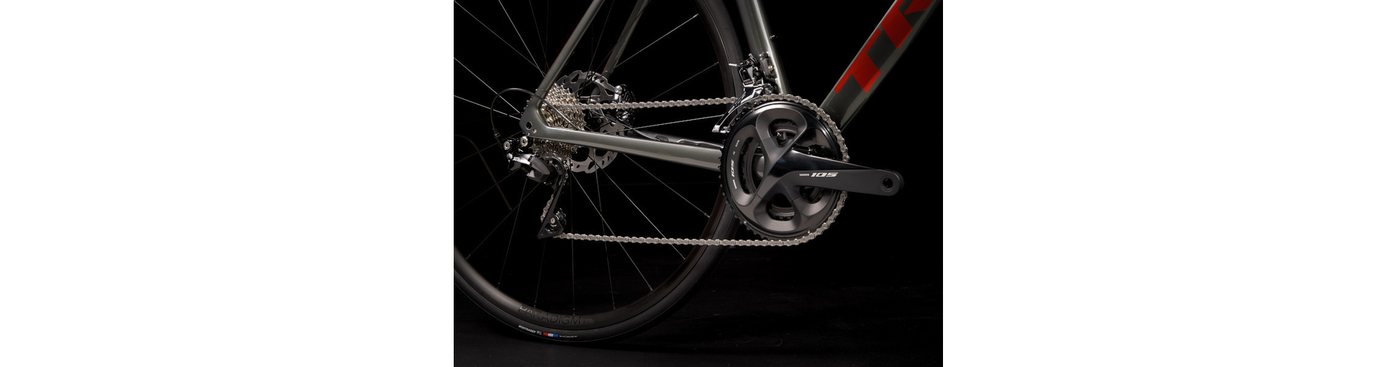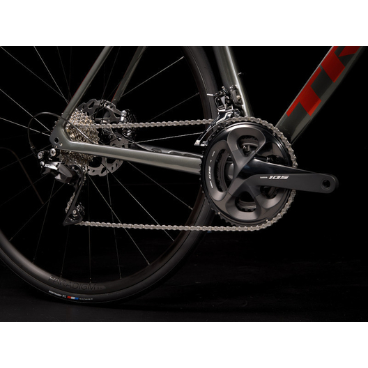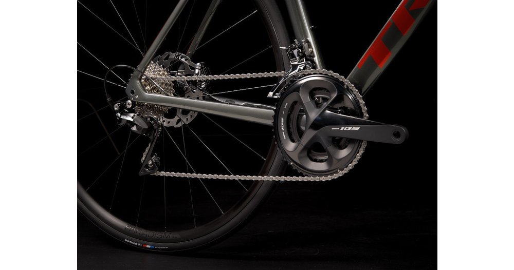 - Un cadre et une fourche légers et aérodynamiques en OCLV Carbon Série 500, une transmission Shimano 105 11 vitesses complète, de puissants freins à disque hydrauliques Shimano à fixation Flat Mount, l’acheminement interne des câbles pour des lignes nettes et des roues Bontrager Paradigm SL tubeless ready.