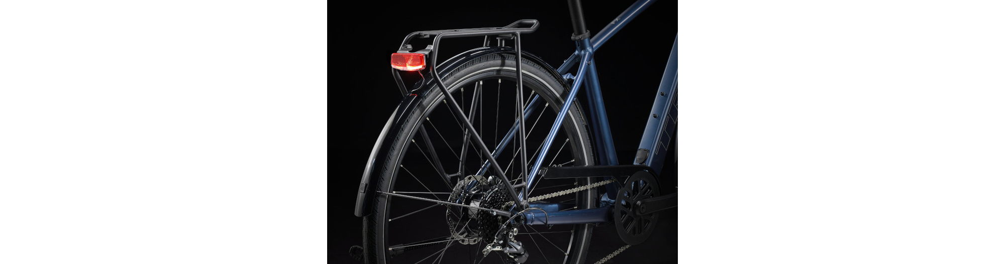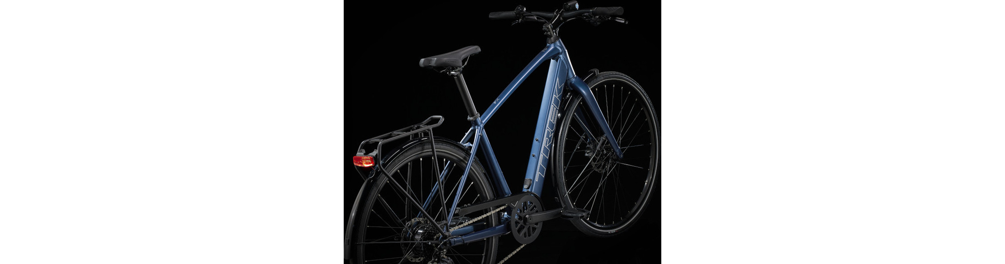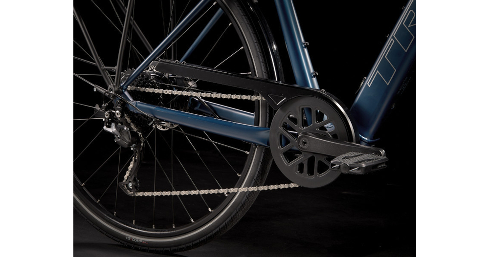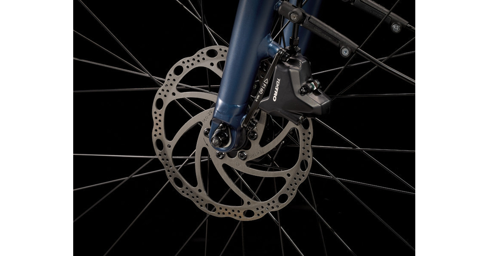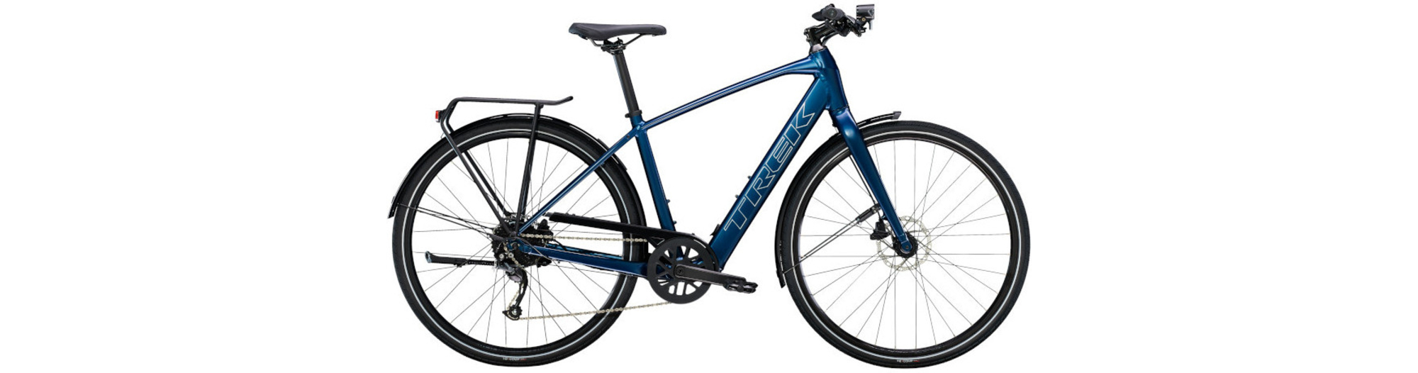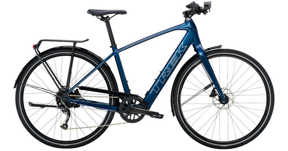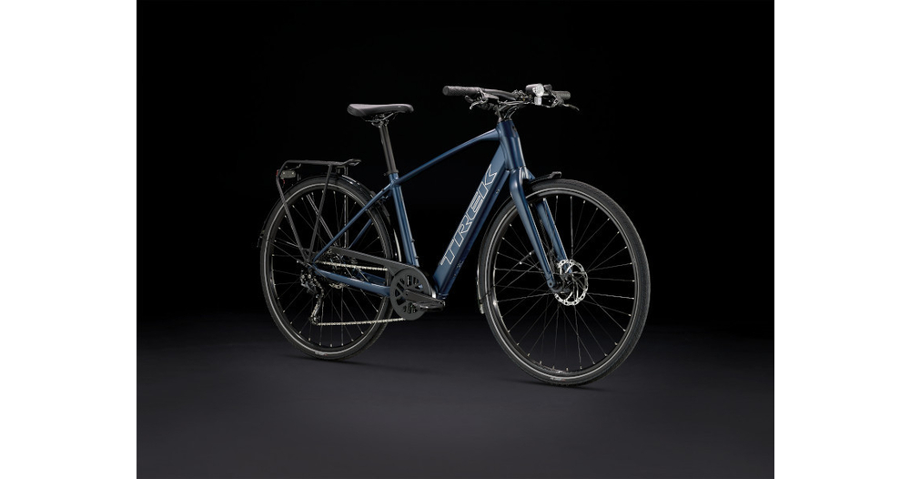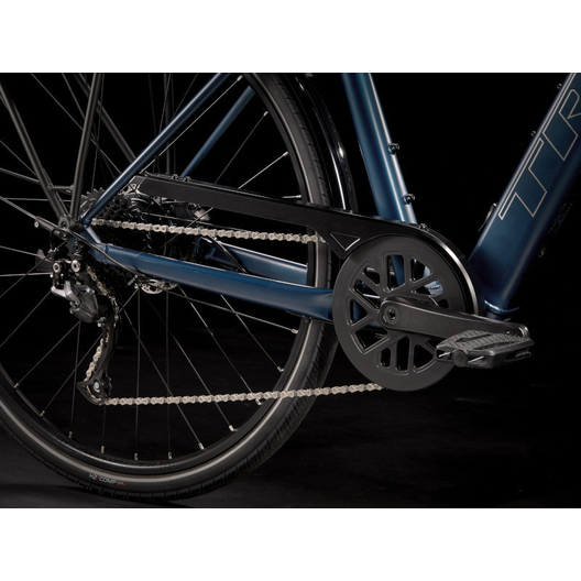 Un cadre et une fourche légers en aluminium, le système d’assistance au pédalage exclusif de Trek doté d’un moteur-moyeu (250 W, 40 Nm) offrant une assistance allant jusqu’à 25 km/h et une batterie de 250 Wh pour une autonomie sur une distance allant jusqu’à 56 kilomètres par charge. Il est également doté de roues rapides 700c, de pneus rapides et stables 40c à flancs réfléchissants, d’une transmission Shimano fiable à 9 vitesses, de freins à disque hydrauliques, d’éclairages intégrés alimentés par la batterie, d’un porte-bagages arrière compatible MIK, de garde-boue et d'une béquille.